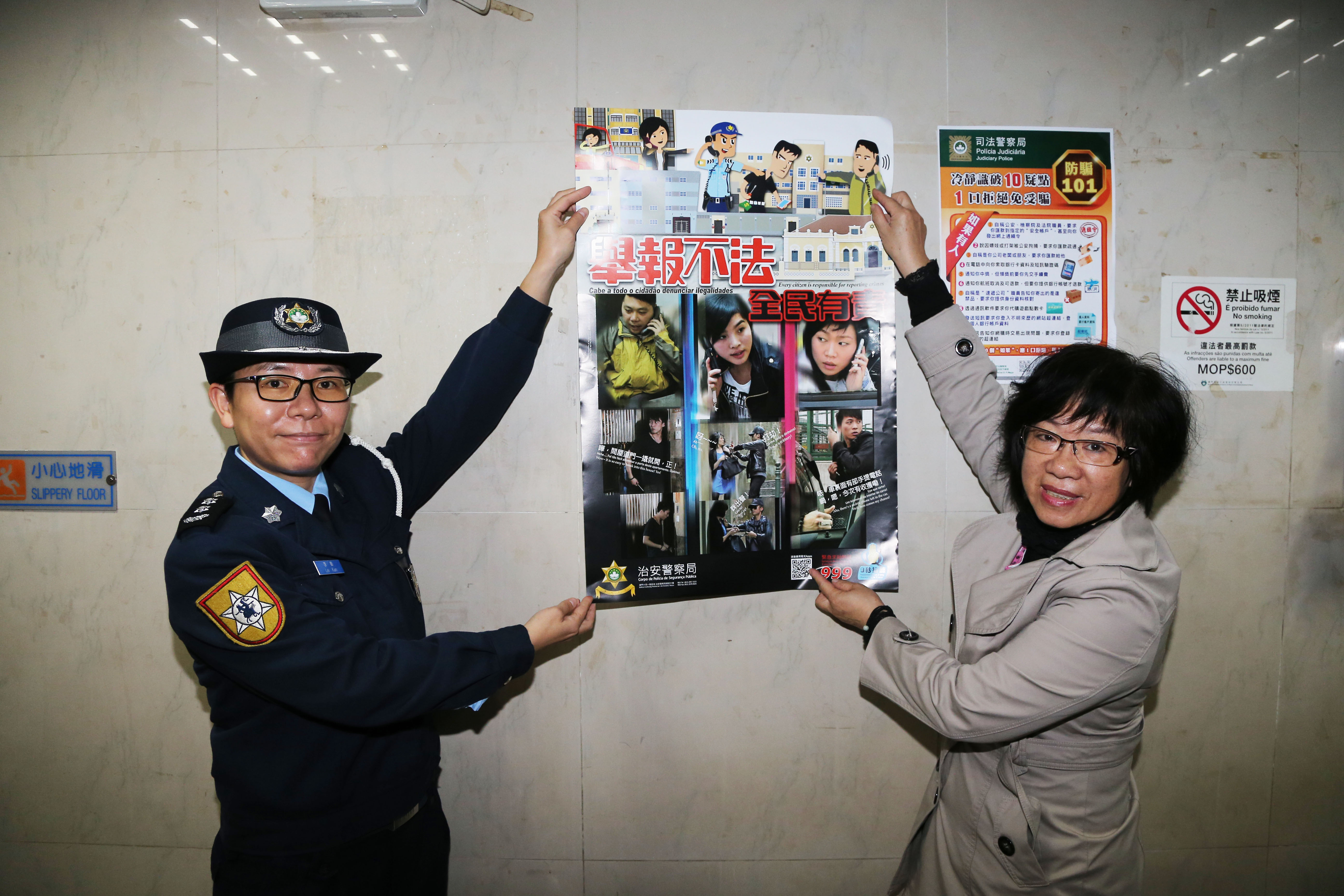 是次活動由治安警察局 行動廳公共關係處李德輝警司、交通廳李勤副警司、澳門警務廳第二警務警司處曾健明警長、澳門街坊會聯合總會大廈管理資源中心秦昶主任、澳門街坊會聯合總會大廈工作委員會林文彬顧問、筷子基坊會陳少佳副秘書長與各大廈業主代表等一行二十多人,向區內大廈住戶及管理員講解慎門戶安全資訊,並沿途向市民及商戶派發有關防罪滅罪的宣傳單張、海報及2016年「警察故事系列」精美座枱曆。