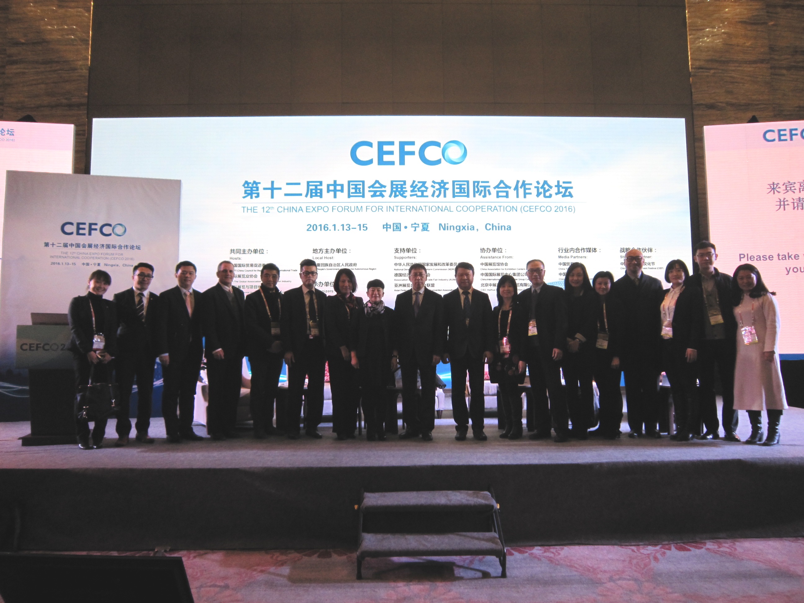 由中國國際貿易促進委員會(CCPIT)、國際展覽業協會(UFI)、國際展覽和項目協會(IAEE)、獨立組展商協會(SISO)主辦之“第十二屆中國會展經濟國際合作論壇”(CEFCO 2016)於1月13-15日在寧夏銀川舉行。