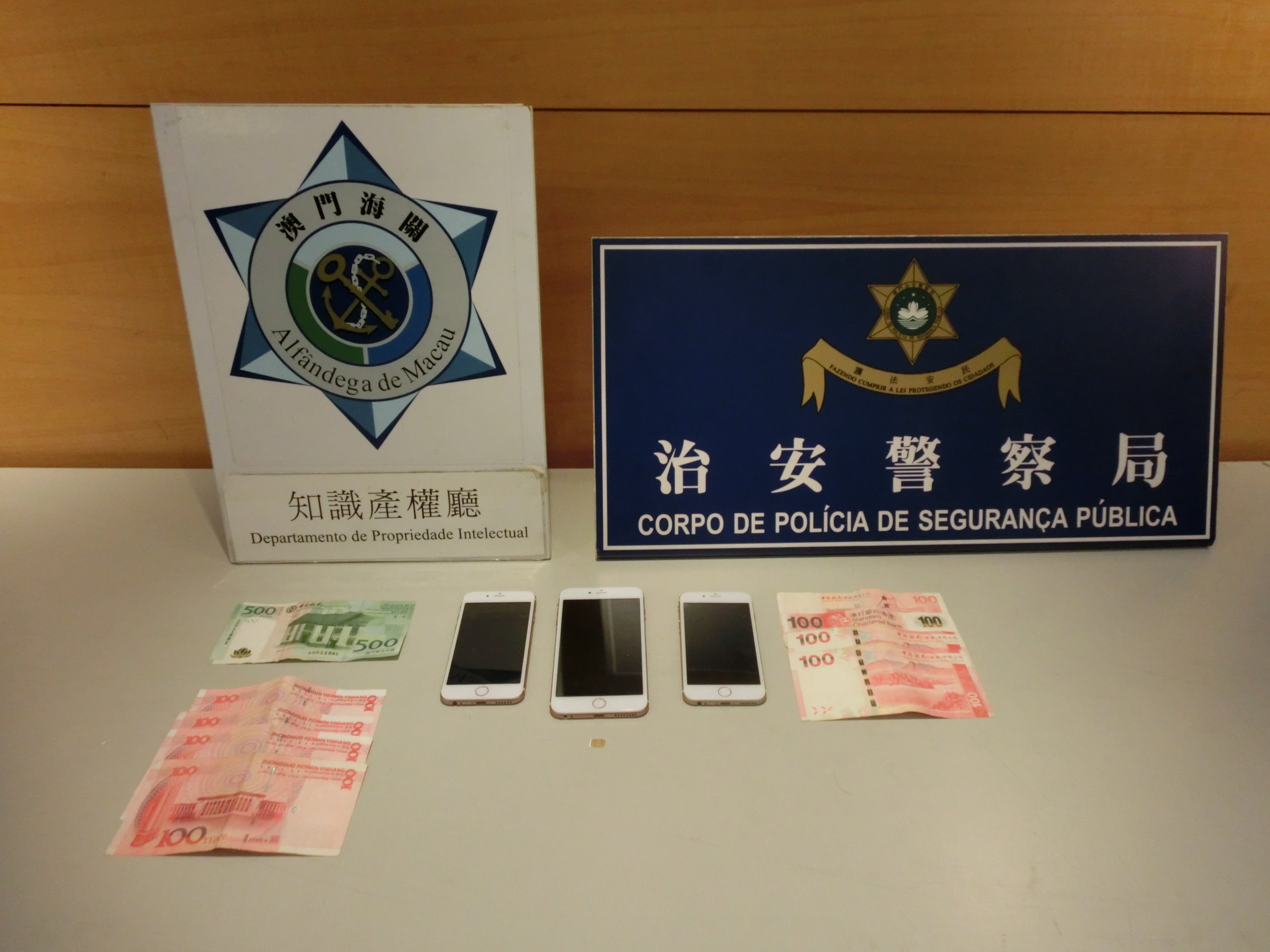 年近歲晚,為加強對侵犯知識產權相關犯罪活動的打擊,海關知識產權廳監檢處展開了一系列的冬防行動,以保障市民及旅客在澳門購物的消費權益。其中澳門海關與治安警察局加強冬防行動及啟動協作機制,在農曆新年將至加強巡查打擊街頭售假的騙案。於一月十三日傍晚,治安警察局澳門警務廳第一警司處警員在澳門南區一帶巡邏時,發現一名男子在街上徘徊及手持一部手提電話向途人兜售。警員隨即表明身份,向該名男子作出身份識別,並在該男子之隨身物品中再發現兩部同款之手提電話,該三部手提電話外觀與正品有異,故警員將其帶返治安警察局調查及後轉交海關作進一步處理。上述物品經品牌權利人代表鑑定為假冒貨品。