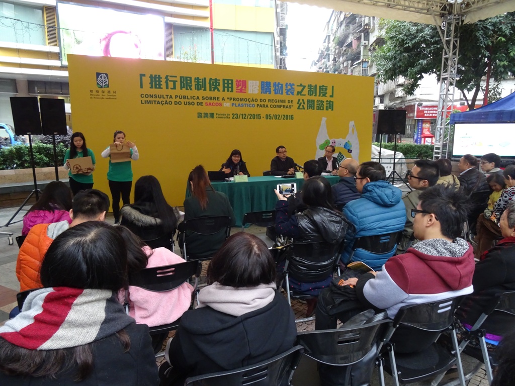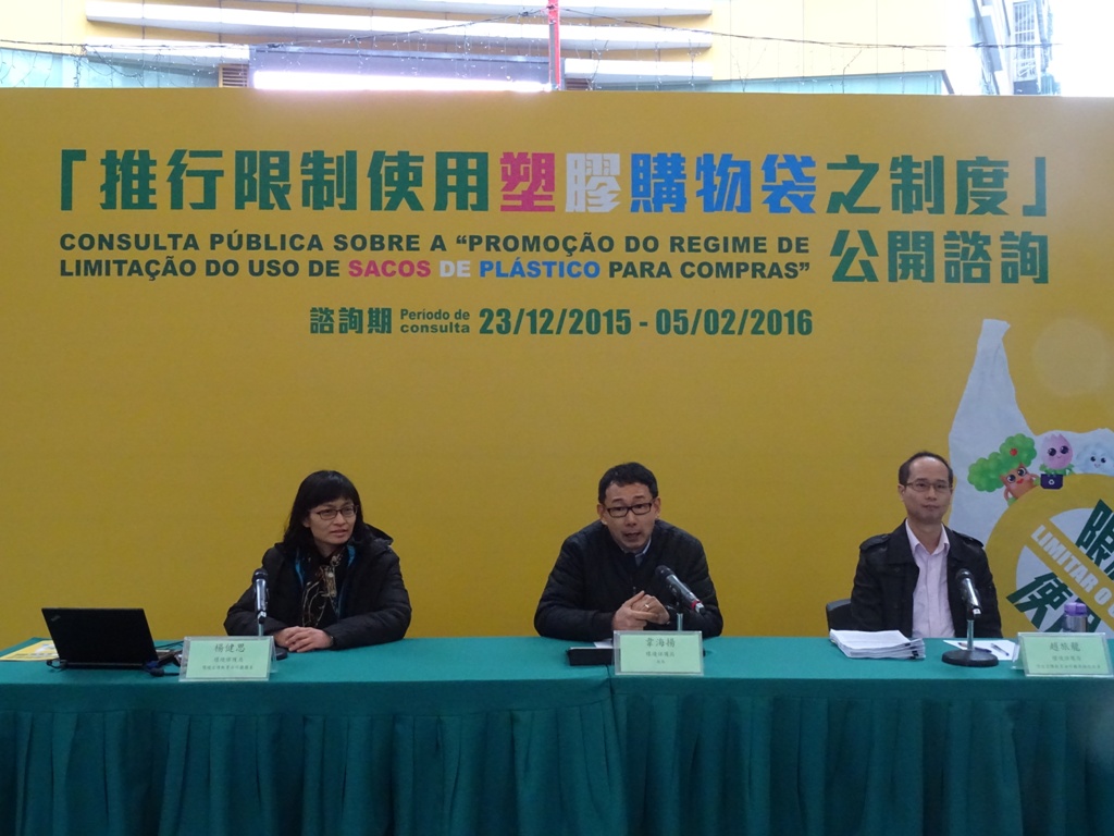 環境保護局由2015年12月23日起開展為期45天的「推行限制使用塑膠購物袋之制度」公開諮詢,並於今日(2016年1月16日)下午三時在三盞燈休憩區舉行面向公眾的諮詢會,以收集市民的意見和建議,讓未來推出的措施更具可操作性和符合澳門實際情況。