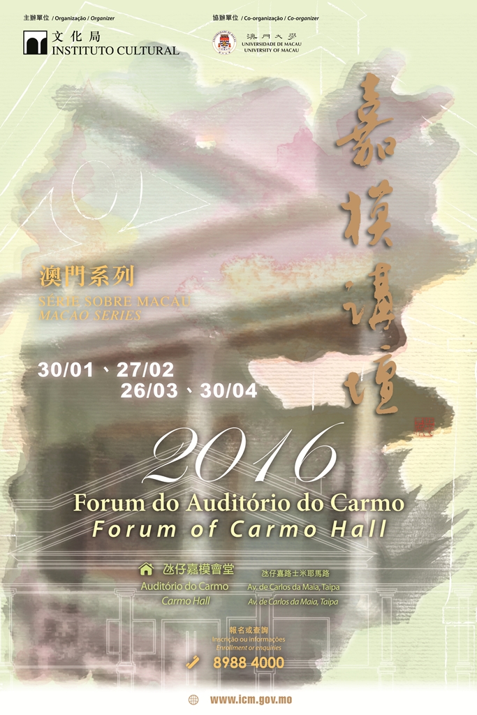 由文化局主辦、澳門大學澳門研究中心協辦的二零一六年“嘉模講壇──澳門系列”將於一月三十日(星期六)在氹仔嘉模會堂舉行,設有兩場講座,分別為“美國來訊:羅伯特•福布斯眼中的澳門”及“東方神葉:英國植物學家華切爾與澳門”。費用全免,名額有限,先到先得,歡迎有興趣人士報名參加。