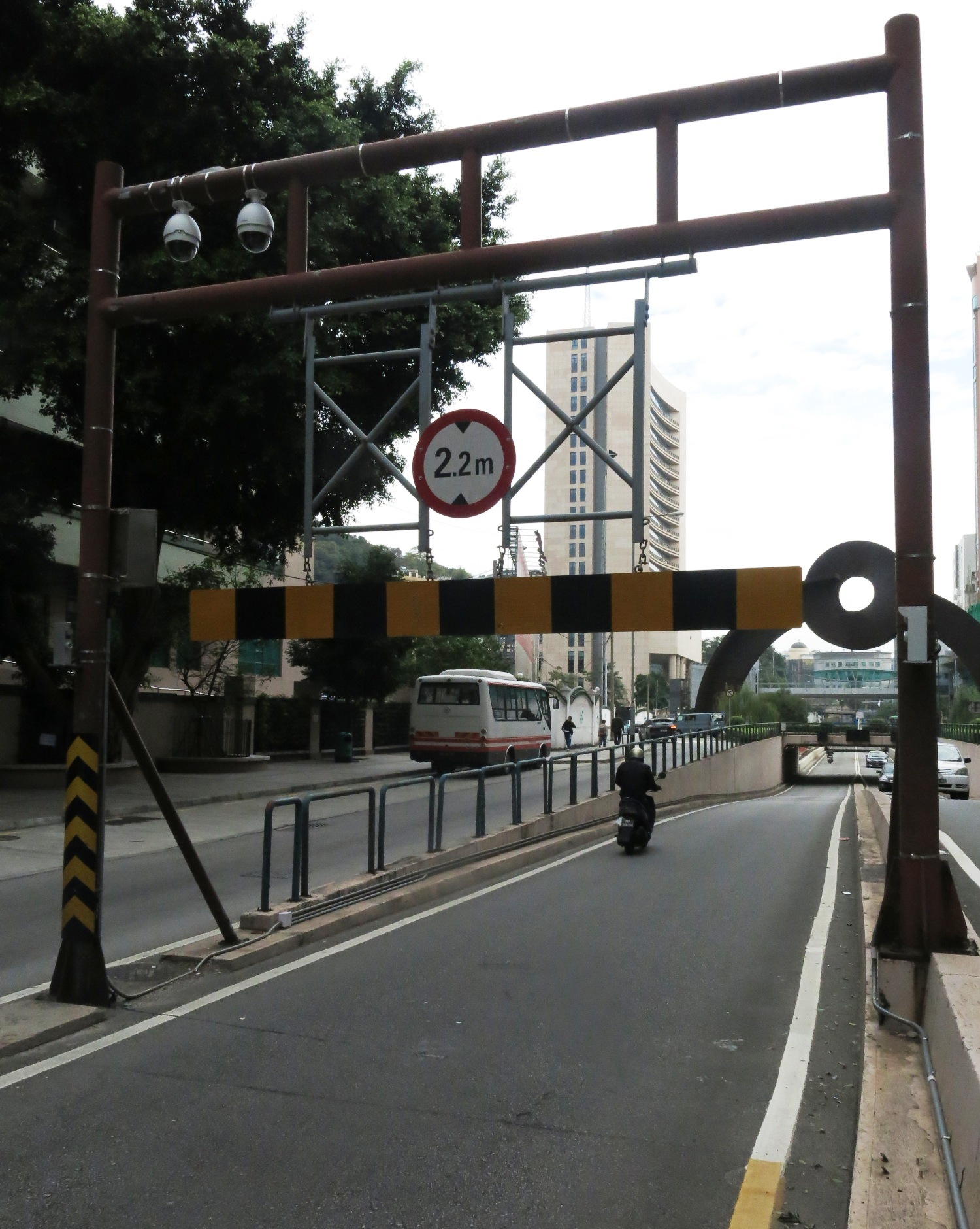 車輛超高檢測設備由紅外線檢測裝置、車道指示燈及LED電子顯示屏等裝置組成,當紅外線檢測裝置偵測到超高車輛將駛進下層通道時,前方的車道指示燈會由綠色的向下箭嘴轉換成紅色的交叉符號,而LED電子顯示屏則會由黃色的“限高2.2米”轉換為紅色的“車輛超高”,以提醒有關車輛須立即減速停車,並待警方到場協助倒車以恢復交通。