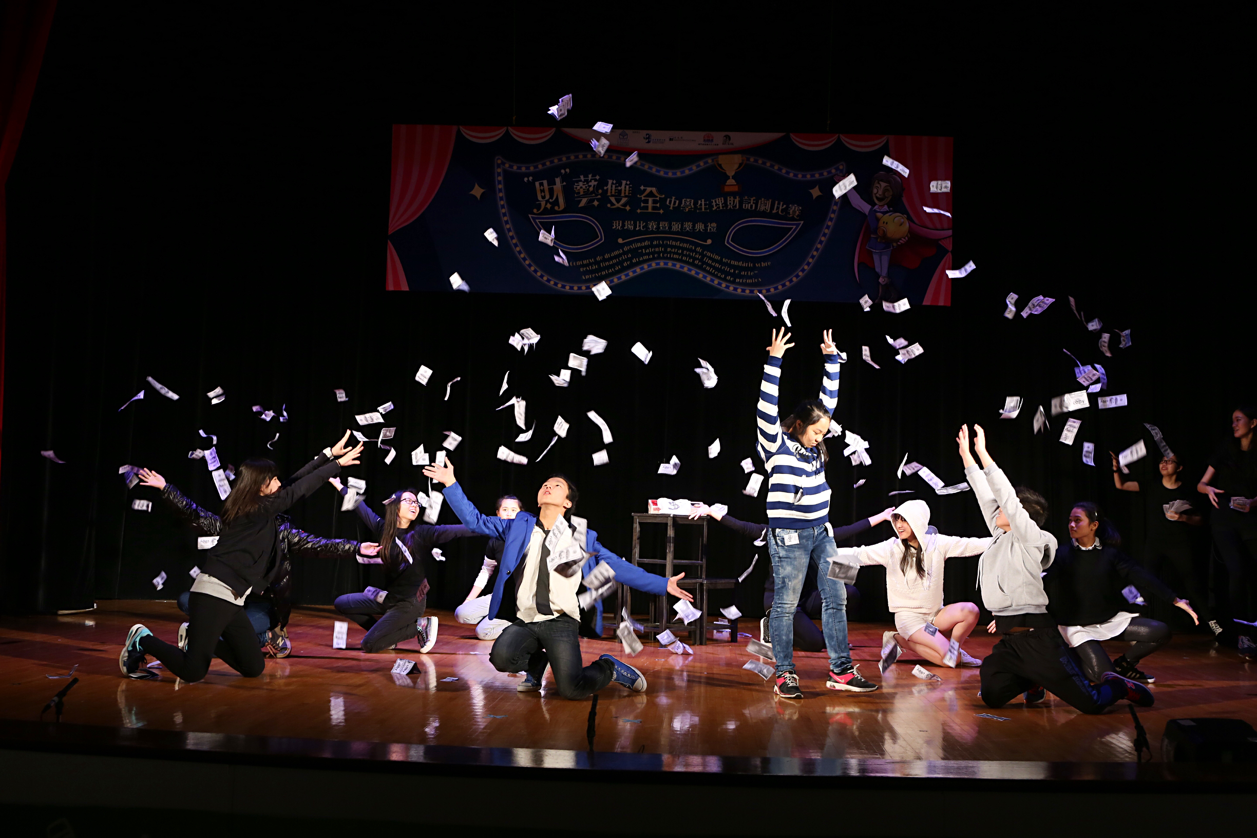 由社會保障基金主辦,教育暨青年局、文化局、澳門保險業中介人協會及曉角劇社協辦的“財”藝雙全中學生理財話劇比賽現場比賽暨頒獎典禮於1月30日假中葡職業技術學校順利舉行。澳門浸信中學參賽隊伍憑演出《理財之道》獲得最佳演出隊伍及最佳指導老師獎,工聮職業技術中學的周凱華、教業中學的林兆亨及培道中學的蕭瑩依次獲得傑出演員金、銀、銅獎。