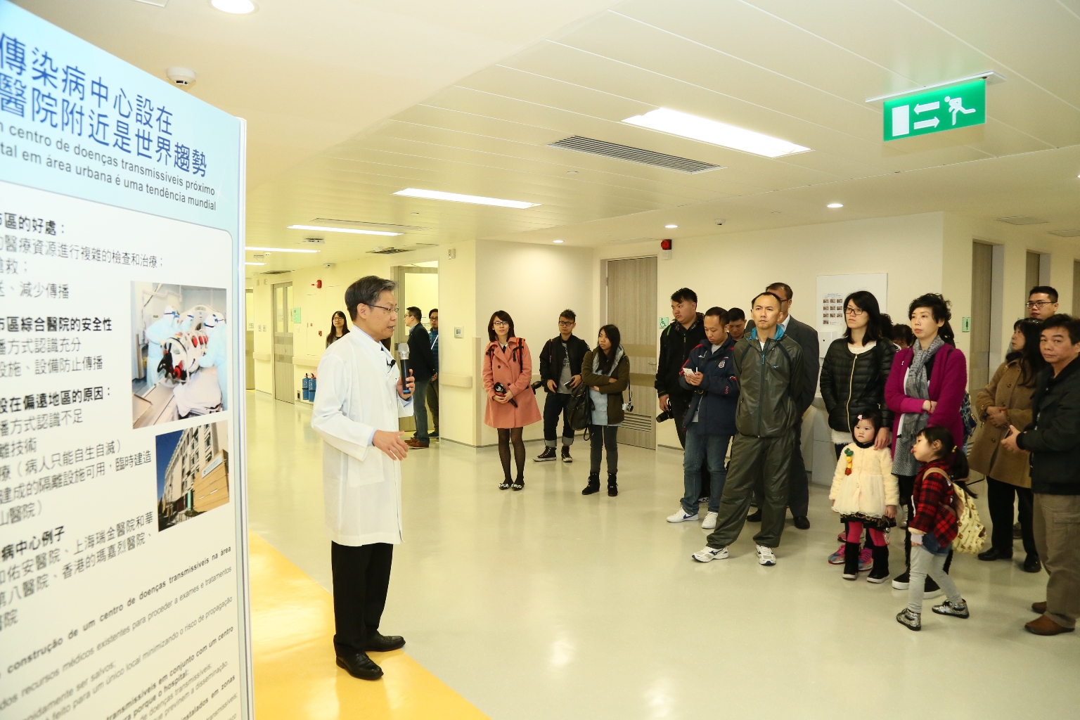 衛生局今天(1月31日)早上安排了仁伯爵綜合醫院附近居民參觀仁伯爵綜合醫院防控傳染病的設施和位於路環的公共衛生臨床中心,衛生局李展潤局長、仁伯爵綜合醫院院長郭昌宇親自迎接市民,郭昌宇院長並向居民介紹了:展示衛生局的傳染病防控措施由2003年至現時的演變過程的展板;於傳染病或流感爆發時的臨時分流區;病人分流區;特別急診及隔離病區;及路環公共衛生臨床中心的隔離病房區,詳細向居民解釋了傳染病防控的措施和設施設備。而在活動後的面對面交流中,多位居民均表示,活動有助他們瞭解特區政府的傳染病防控工作,釋除疑慮,支持興建傳染病大樓,希望衛生局進一步加強宣傳,做好工程監督的工作。