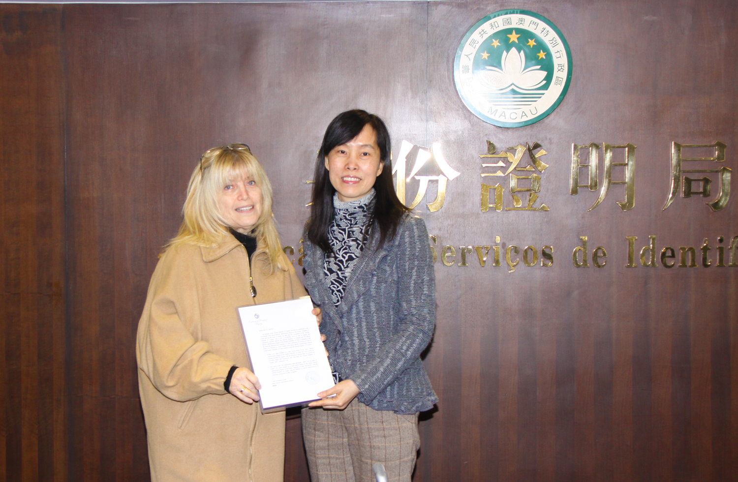 烏拉圭駐香港名譽領事Dr. Anabella Levin-Freris於2016年1月25日到訪身份證明局與局長歐陽瑜會面,通報特區護照及旅行證持有人可免簽證進入烏拉圭。