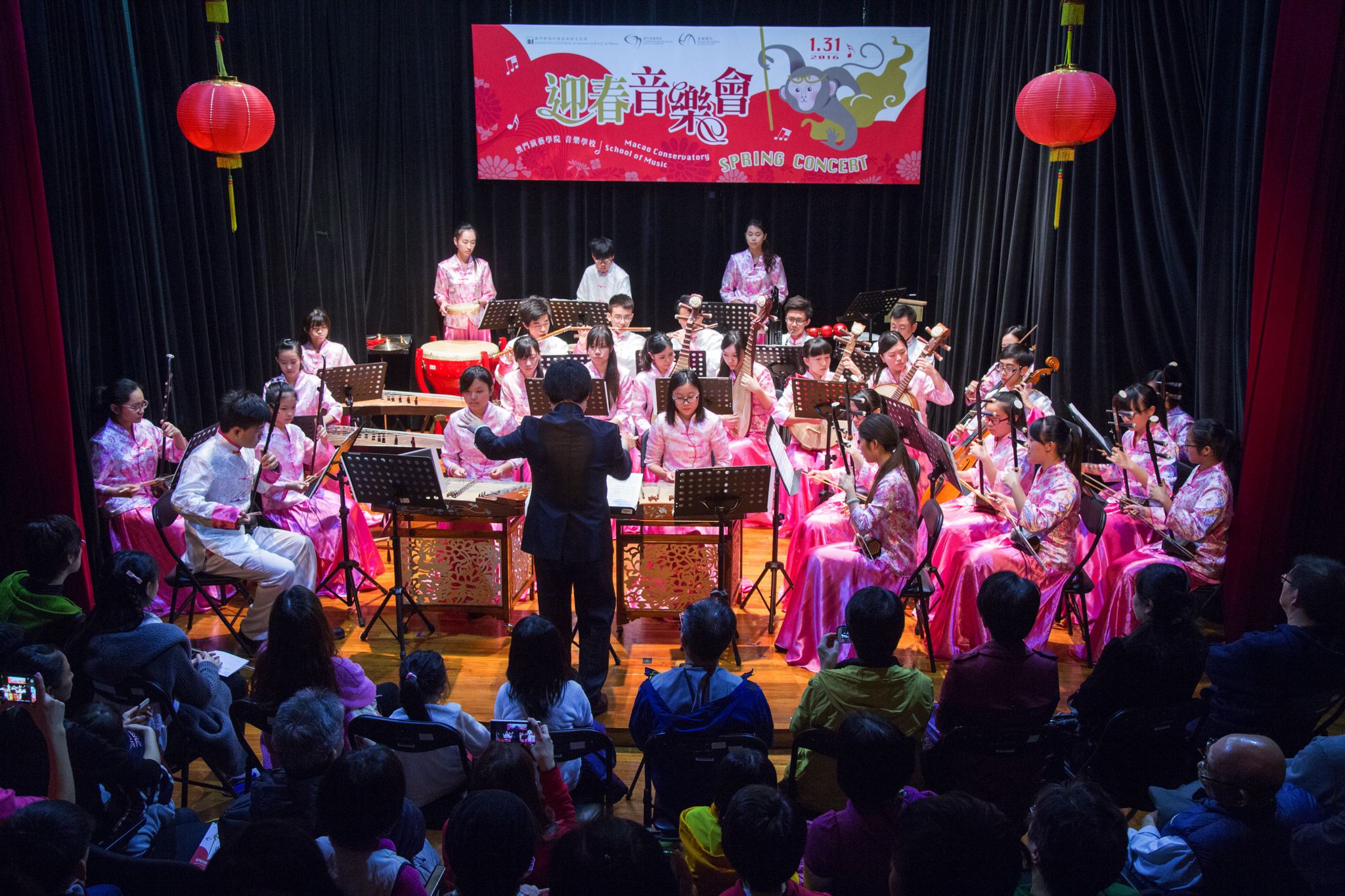 文化局澳門演藝學院音樂學校《迎春音樂會》日前〈一月三十一日〉舉行,學生以充滿節慶氣氛及風格多樣的樂曲與市民歡慶新春,場面熱鬧,座無虛席。