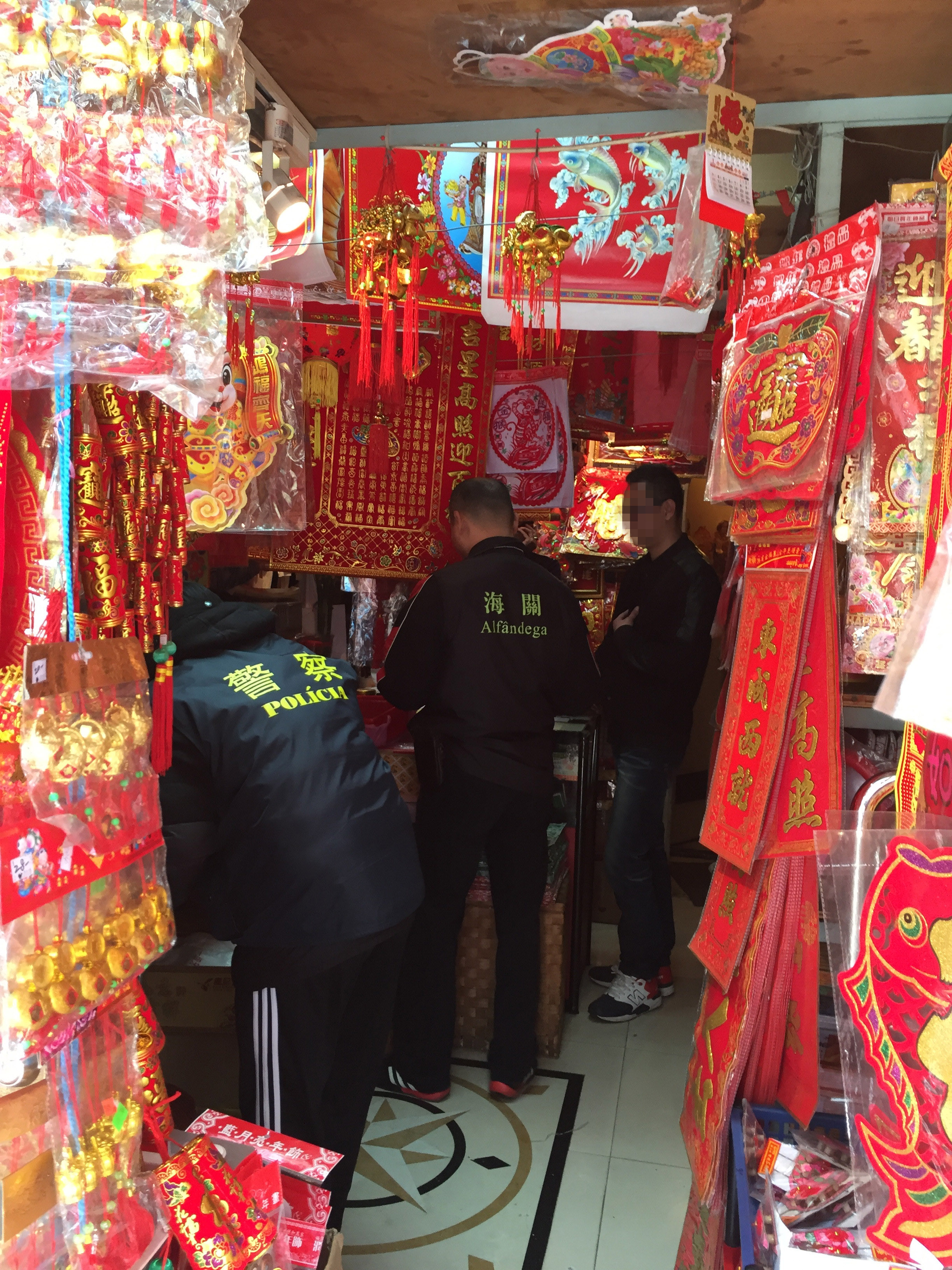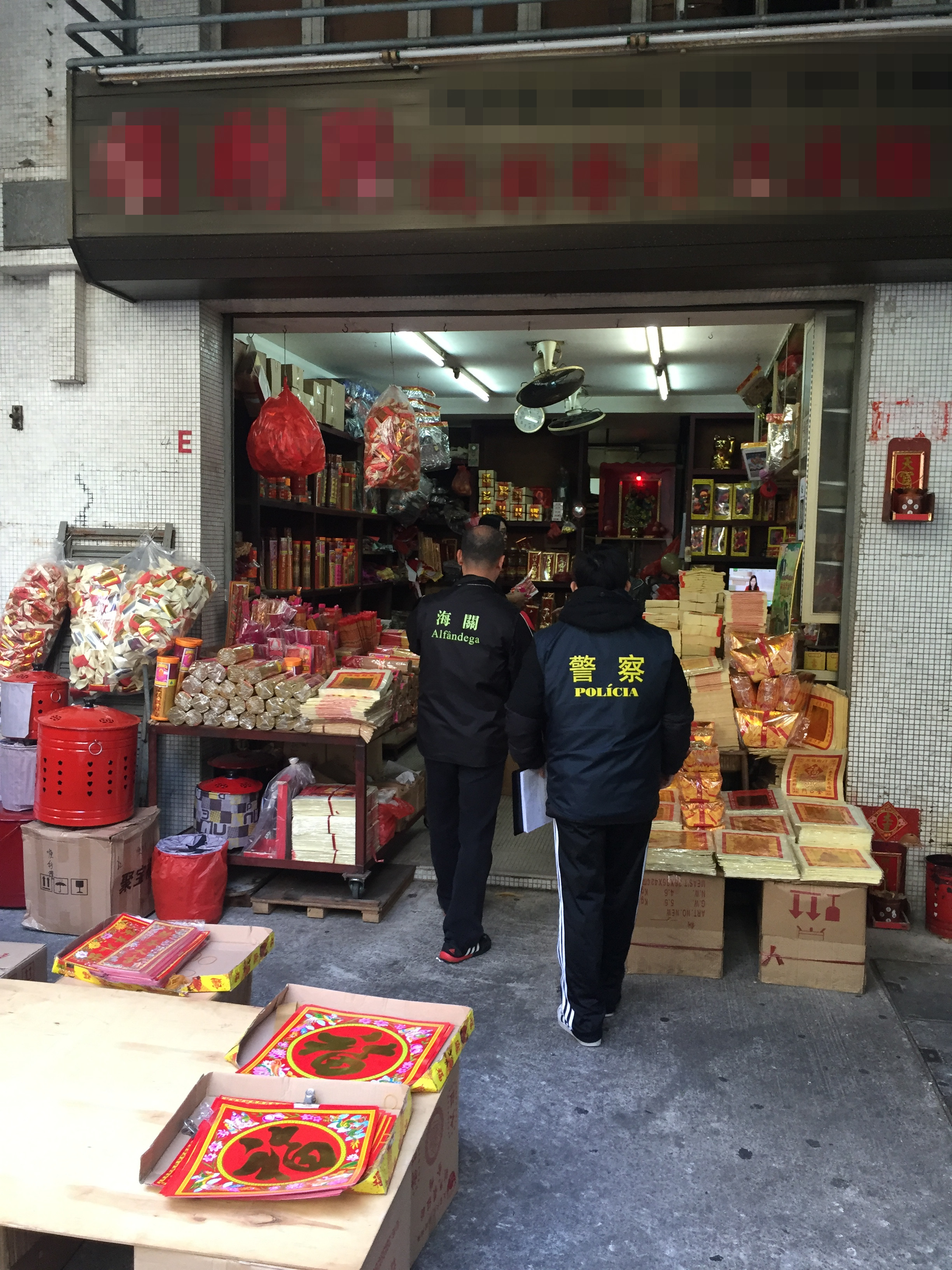 根據冬防行動計劃,治安警察局、海關及民政總署持續打擊非法進口煙花、爆竹的聯合行動,於2016年2月4日及5日,分別出動29人及26人,巡查於本澳各地點售賣爆竹之店舖。兩日的行動中共巡查26間店舖,截查45人(其中42人持有澳門居民身份證、3人持有外地僱員身份認別證),並於其中12間店舖查獲非法進口之爆竹,共380,004頭。