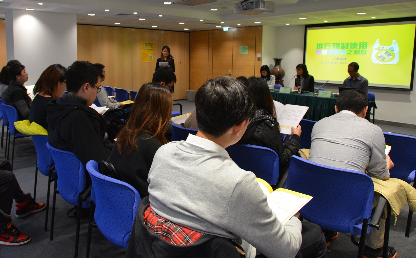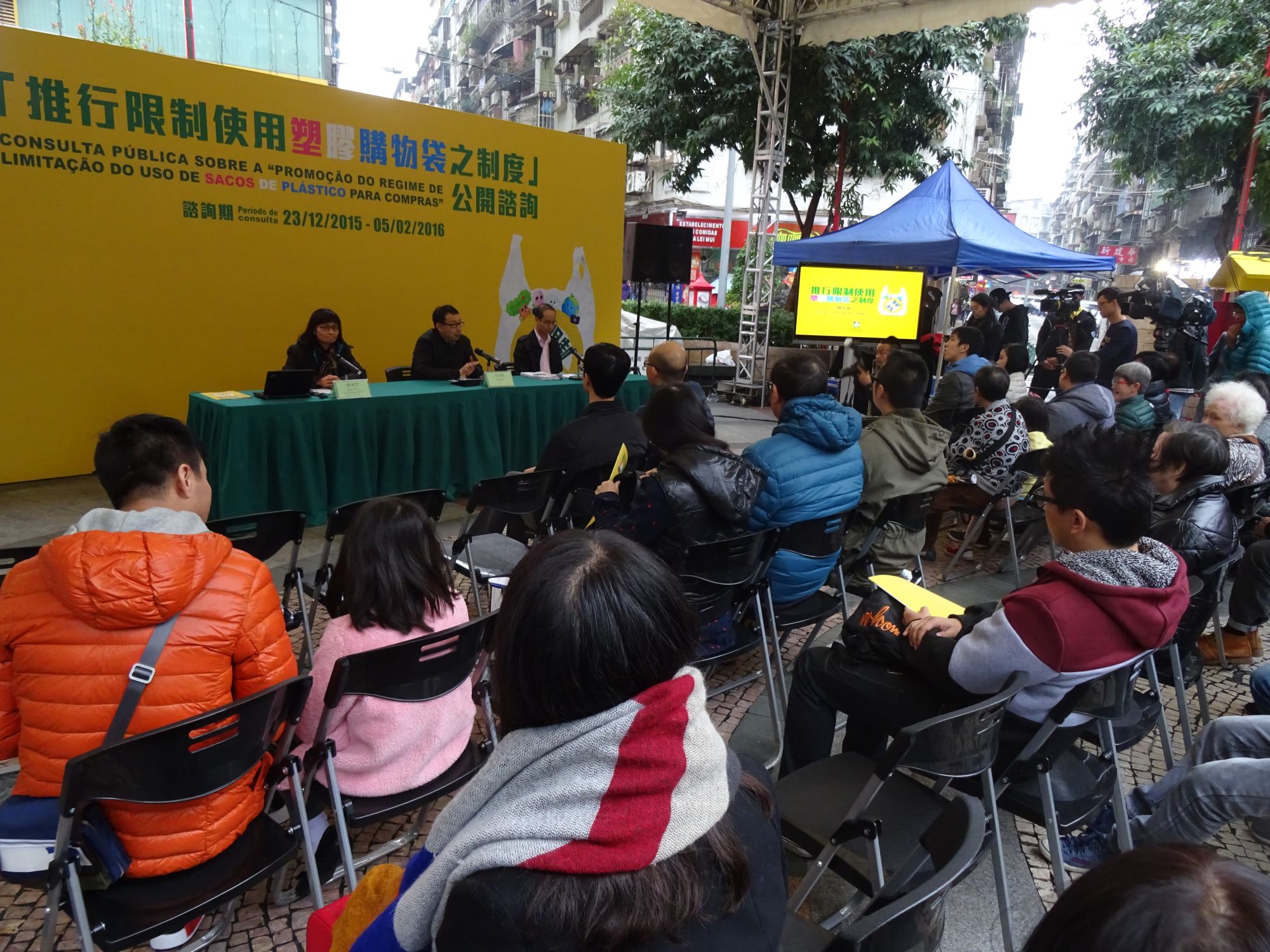 環境保護局在2015年12月23日至2016年2月5日期間開展「推行限制使用塑膠購物袋之制度」公開諮詢,透過新聞發佈會、公眾諮詢會和面向業界、社團、社區服務諮詢委員會及政府部門的諮詢專場等渠道,收集社會各界對於零售層面實行「膠袋收費」措施、受規管的商戶類別、收費水平、豁免情況等問題的意見和建議。