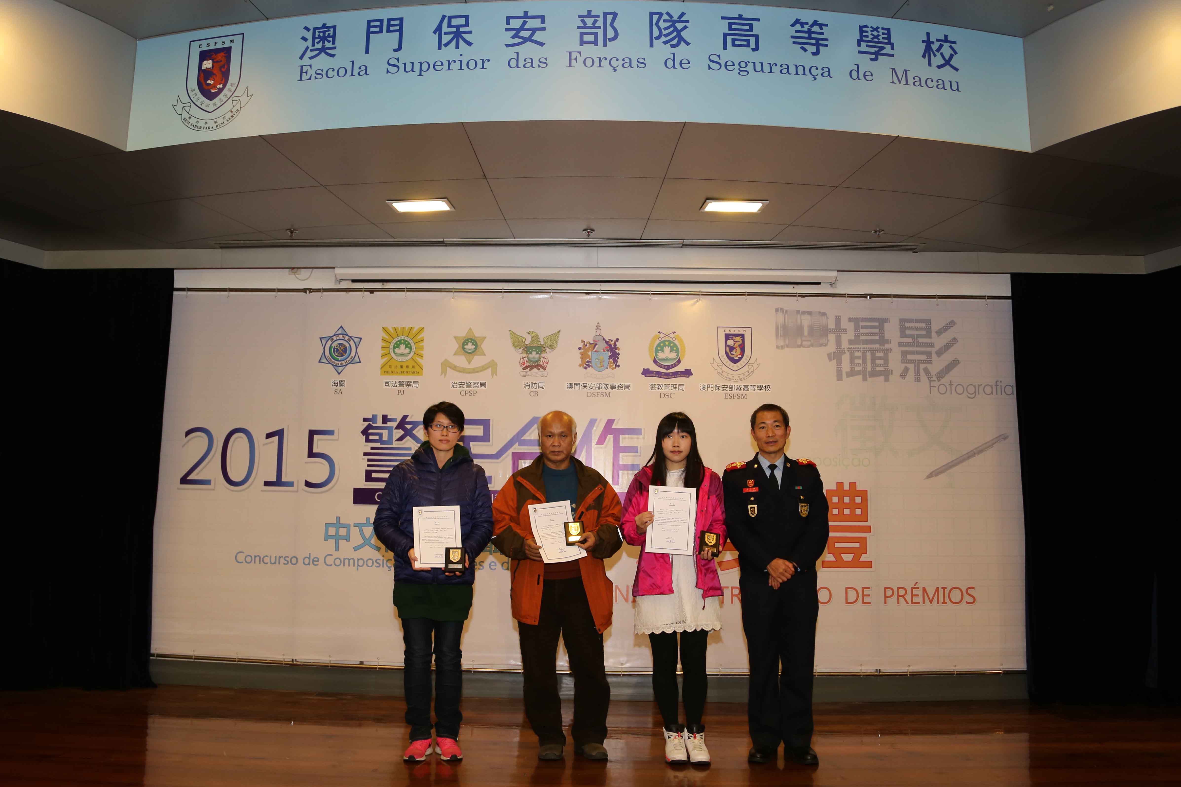 由澳門保安部隊及保安部門合辦的“警民合作”中文徵文及攝影比賽頒獎禮於2016年2月5日在保安高校禮堂舉行。保安部隊及保安部門、高等院校、中學等,以及各獲獎單位均派出代表,約180人出席。