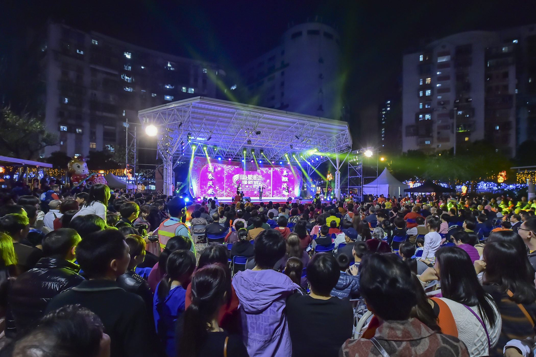 “福星澳遊耀新歲 猴年花車巡遊匯演”共有14部花車參與巡遊,由沙梨頭北街出發,經青洲大馬路、拱形馬路、黑沙環馬路、慕拉士大馬路、黑沙環第四街、長壽大馬路、市場街至祐漢街市公園為終點。旅遊局於起步點及終點派發猴子吉祥物、猴子造形帽、花車巡遊發光手帶及閃光手拍等小禮物,大受歡迎。祐漢街市公園的舞台表演於8時15分開始,澳門歌手杜俊瑋、謝偉倫、蘇耀光、程文政、羅凱瑩、陳倚俐、禤泳倫及蘇俏慧落力演出,香港著名藝人王浩信為巡遊壓軸表演,現場觀眾反應非常熱烈。整個活動於晚上約9時半完成。