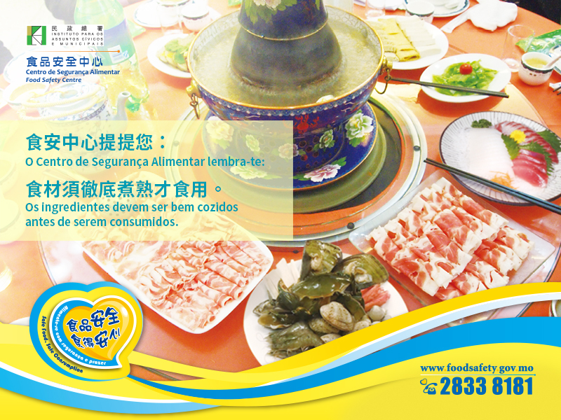 民政總署食品安全中心近月接獲數宗懷疑因食用未經徹底煮熟或處理不當的水產食品後,引致身體不適的個案。食安中心特別提醒公眾須加強個人衛生及食品安全意識,特別對火鍋及燒烤類的食物,必須將食材徹底煮熟才進食,尤其貝類水產食品,如生蠔、帶子等。