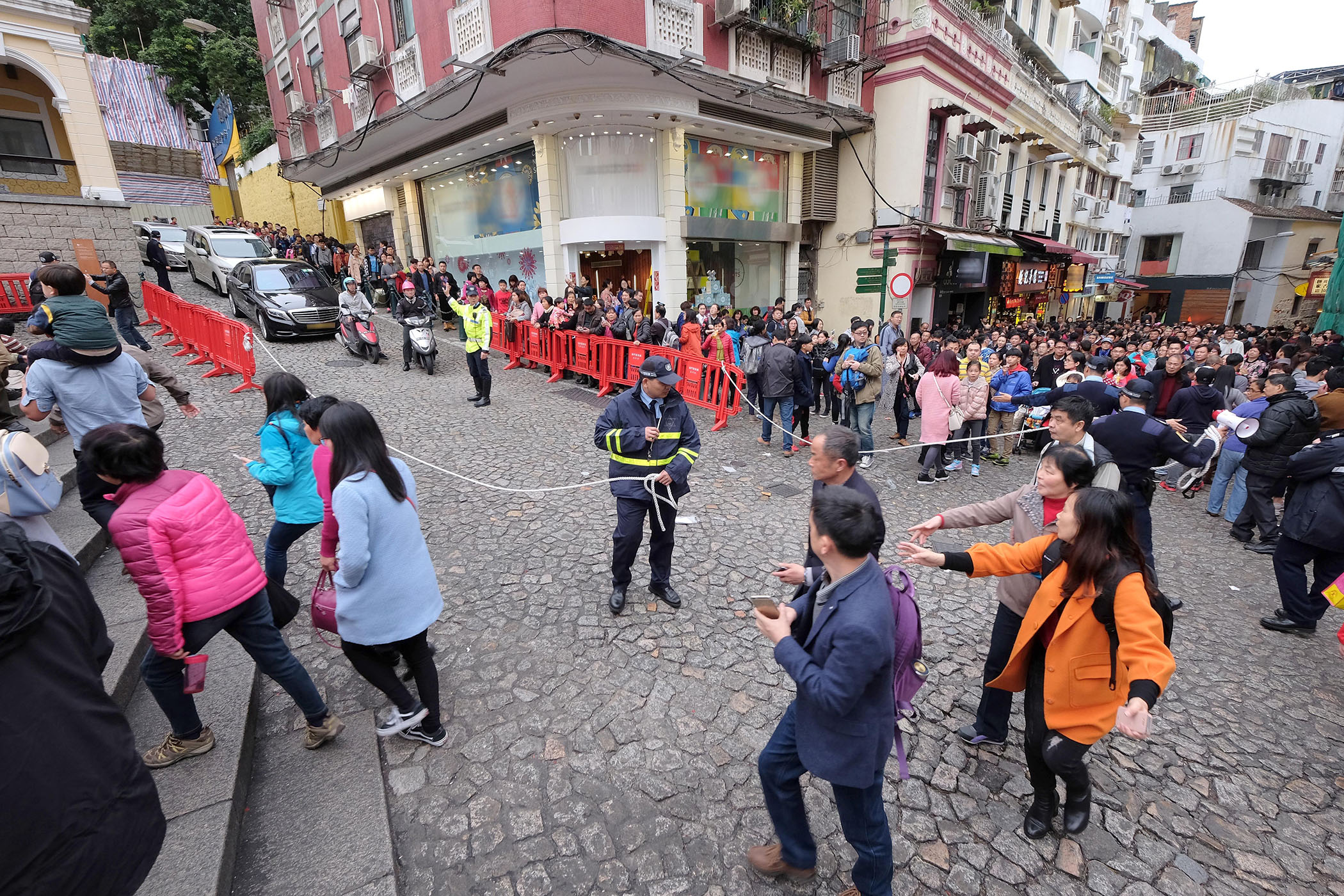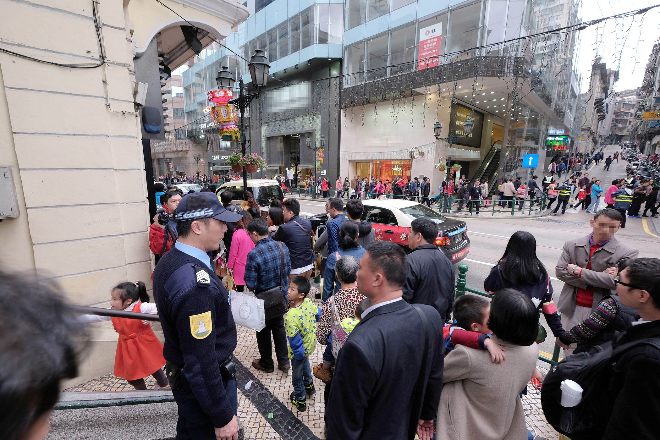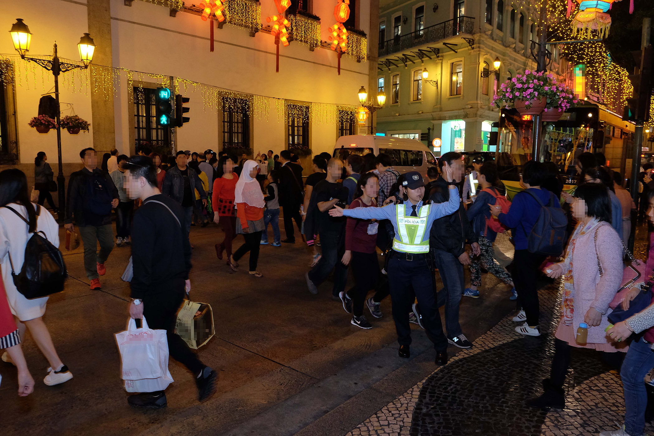 另外,新春期間市面人流暢旺,大量旅客前往新馬路及大三巴一帶觀光消費,由年初三至初六,該四天午後至傍晚人流特別密集,故警方先後四次在新馬路實行了第一級人潮管制措施;而大三巴街在年初三至年初五先後啟動三次人潮管制措施,期間市民和旅客積極配合警方現場的指示,有序行進。而措施以外時段則透過安排警員在道路接壤點引導,有效舒緩交通及人流,整體秩序良好。