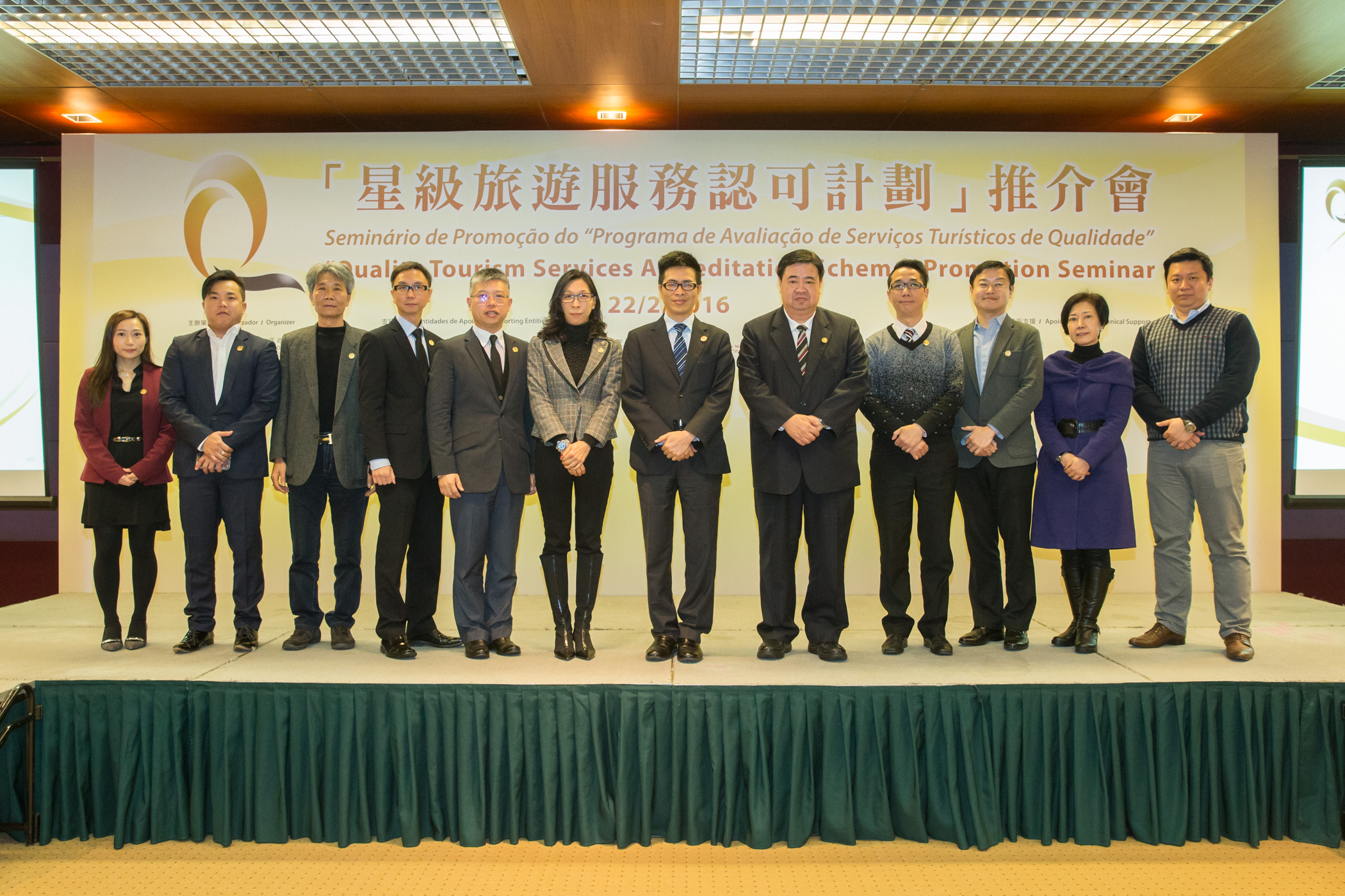 “星級旅遊服務認可計劃”推介會今(22日)於旅遊活動中心舉行,向餐飲業界介紹計劃的評審準則及申請手續。旅遊局副局長程衛東、消費者委員會執行委員會主席黃翰寧、旅遊局培訓及質量管理廳廳長梁美彩、民政總署代表湛耀宏、旅遊學院代表陳嘉適博士、香港品質保證局市場調研及分公司運營助理總監丁國滔、澳門中小型餐飲業商會副理事長劉深泉、澳門酒店協會監察長黃淑霞、澳門旅遊商會副理事長鄧嘉敏及澳門旅遊業議會副常務理事鄭耀祺等出席推介會。香港品質保證局於推介會上介紹本計劃餐飲界別的評審準則。