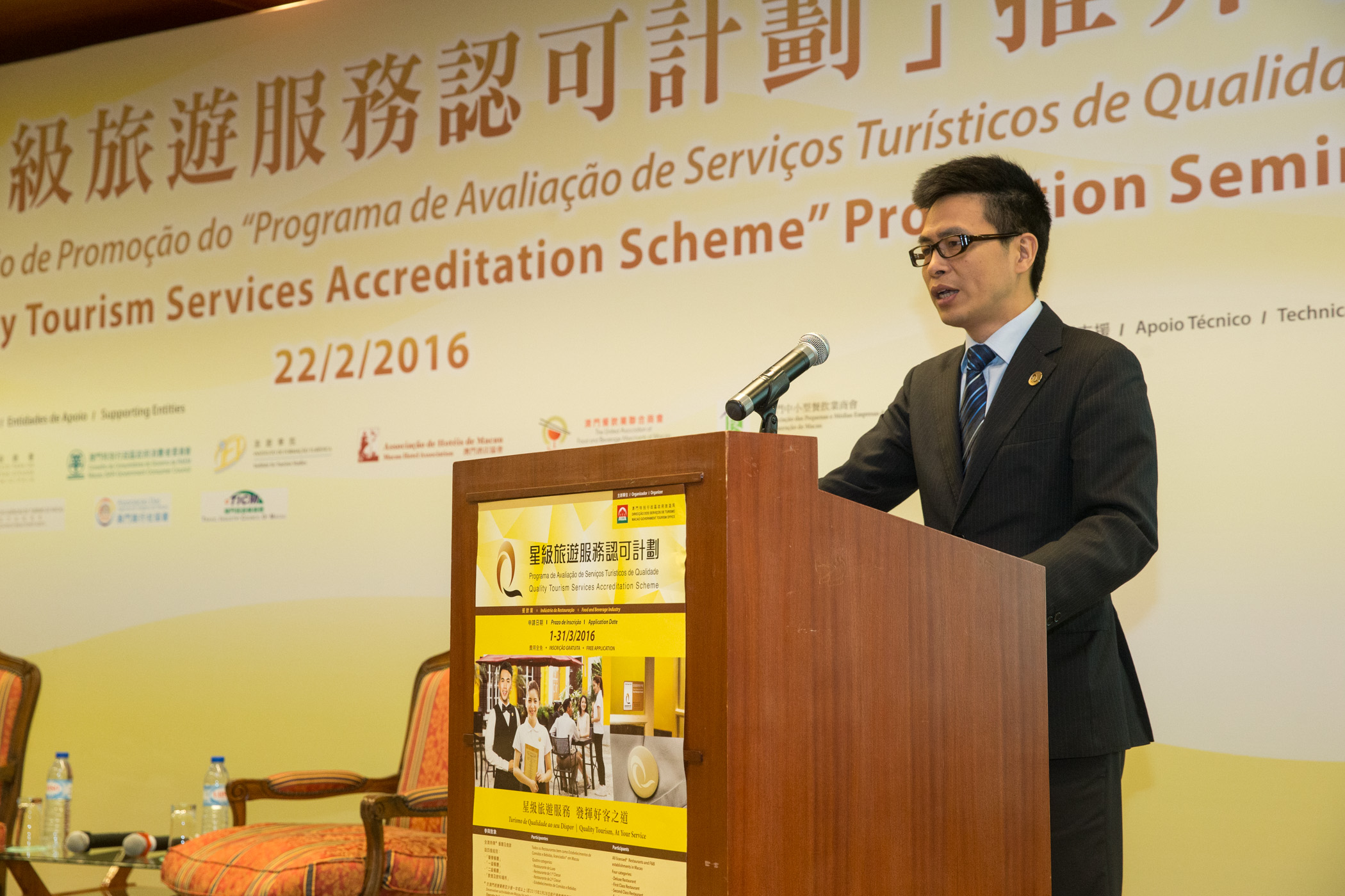 副局長程衛東致辭時表示,去年此項計劃取得了理想的成效,參加商戶獲得的總體評分比2014年高。今年會將此項計劃擴展至旅行社行業,並會繼續優化計劃流程及評審準則,研究擴大計劃的覆蓋面,期望逐步將此計劃擴展至其他旅遊相關行業,從而提升澳門整體的旅遊服務水平,共同推動優質旅遊,配合特區政府加快“世界旅遊休閒中心”的建設步伐。程衛東亦介紹今年度“星級旅遊服務認可計劃”餐飲界別的申請方法和參加裨益。