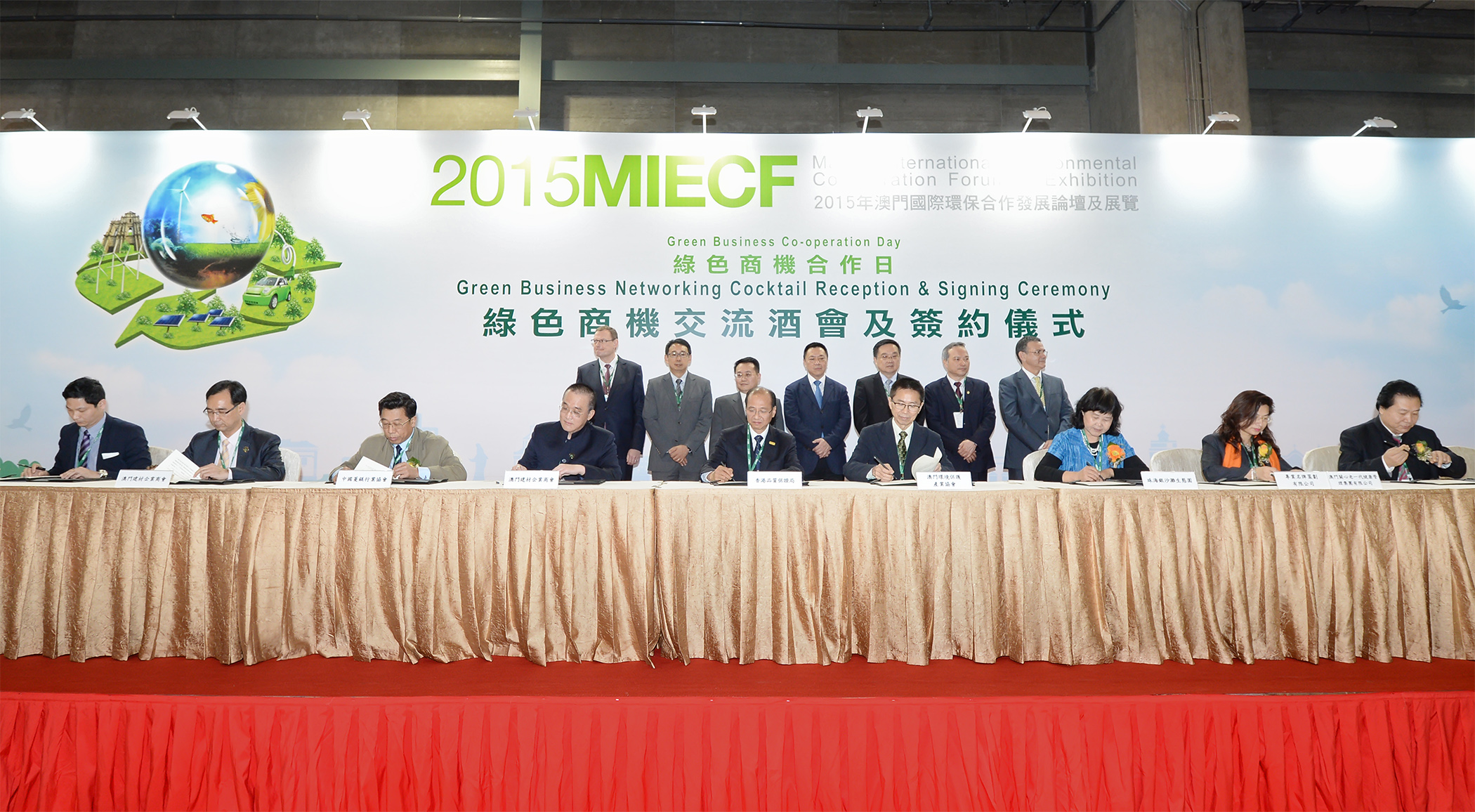 • “2015年澳門國際環保合作發展論壇及展覽”(2015MIECF)-綠色商機交流酒會及簽約儀式