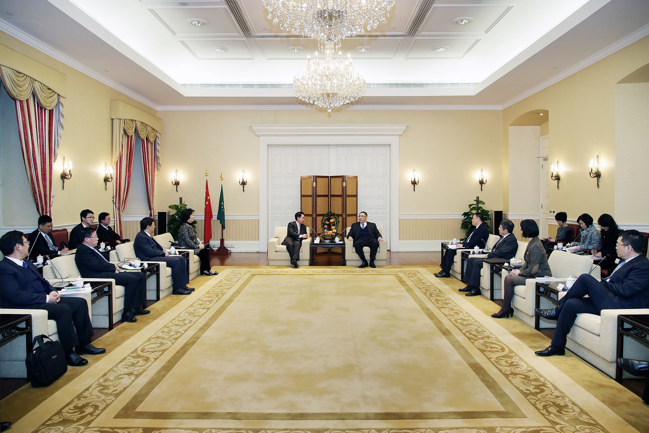 參加會面的還包括行政長官辦公室主任柯嵐、新聞局局長陳致平、行政長官辦公室顧問高展鴻及林媛,以及珠海巿委常委、橫琴新區黨委書記劉佳、珠海巿副市長、市公安局局長張強等官員一行。