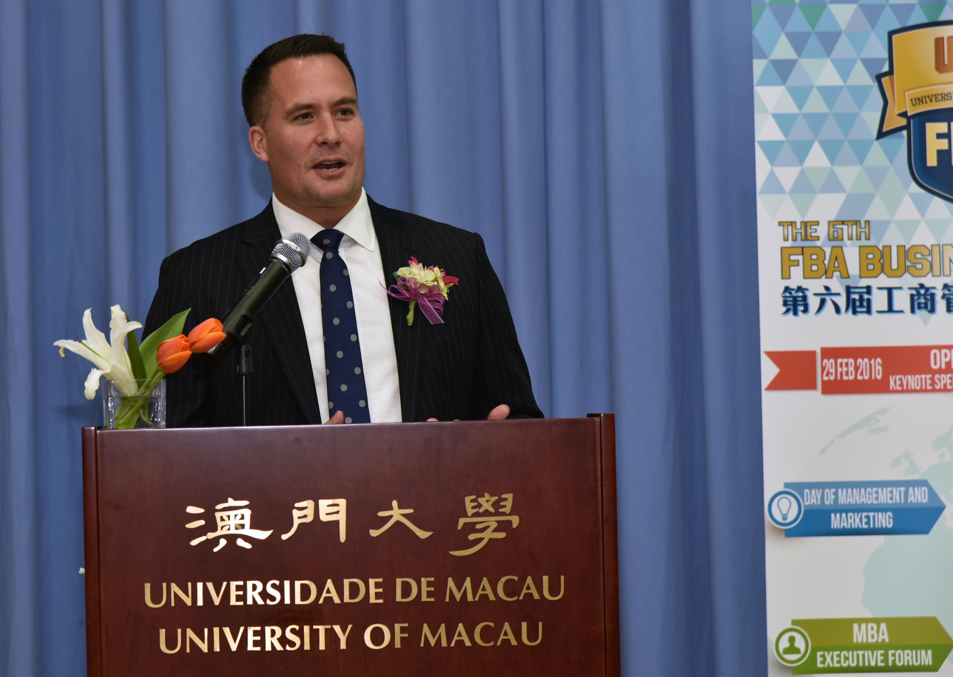 其後,Mirfin以“金融工業革命"為題,分享他對未來金融科技創新的精闢見解,探討金融服務公司紛紛趨向以尖端科技聯繫客戶的原因。講座吸引了近二百名澳大師生、本地中學生、學者、政府官員及金融界從業員到場聆聽。