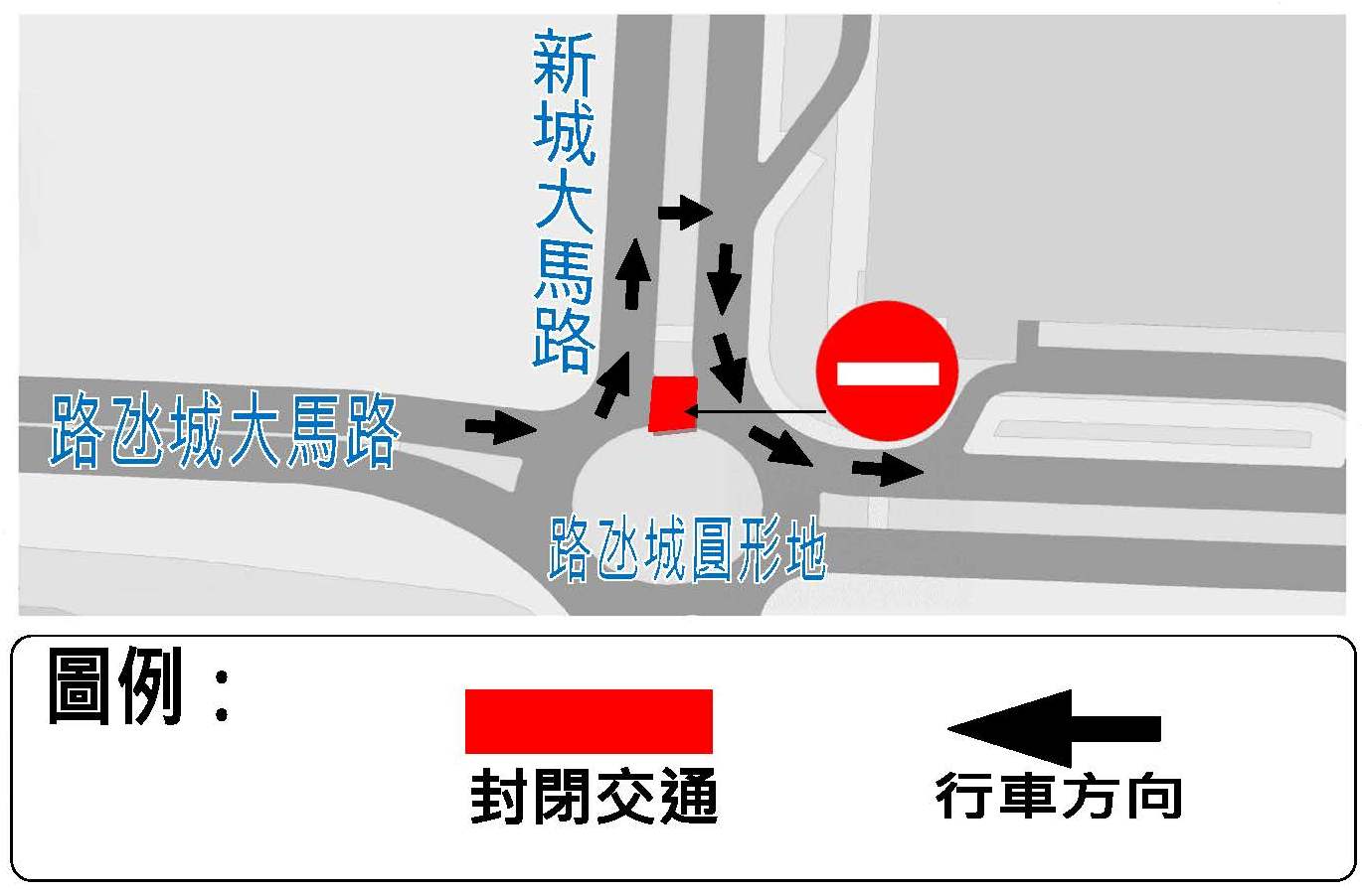 氹仔新城大馬路與路氹圓形地交界封閉交通示意圖
