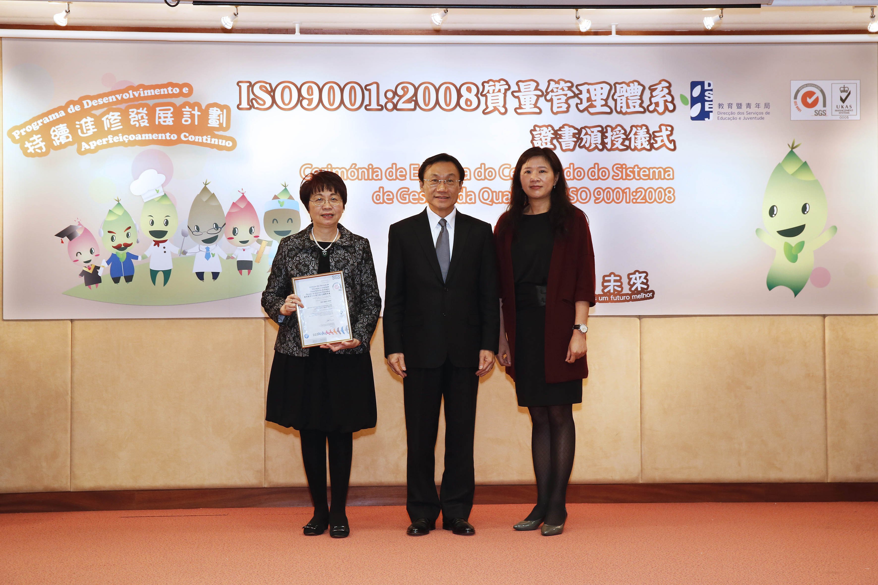 為優化行政程序和提升工作效率,教育暨青年局經過長期的籌備和部署,於2015年2月5日考獲了有關“持續進修發展計劃”的個人申請、審批及支付部分的ISO9001:2008質量管理體系證書,同年12月12日機構申請、審批及支付部分亦成功考獲了ISO9001:2008質量管理體系證書。該證書受英國認可服務組織UKAS(United Kingdom Accreditation Service)認可,標誌著該計劃之質量管理體系符合國際標準。