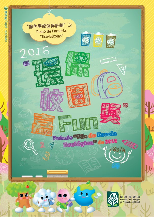 環境保護局為推動學校深化環境教育工作,鼓勵老師設計適合澳門的環保教材,以及表揚學生積極參與校園環保活動,已於今年1月28日推出2016“綠色學校嘉許計劃”、2016“環保教案設計獎勵計劃”及2016“環保校園嘉Fun獎”,歡迎各綠色學校、現職本澳之教育界人士及現正就讀高等教育課程之本澳居民踴躍參與,共同提升澳門的環境教育。