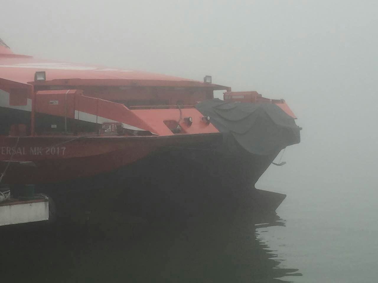 船公司報稱船隻正在港珠澳大橋高速客船專用航道過橋孔時,因應大霧天氣船隻已慢速行駛,但由於當時海面能見度十分低,因此誤撞橋躉。