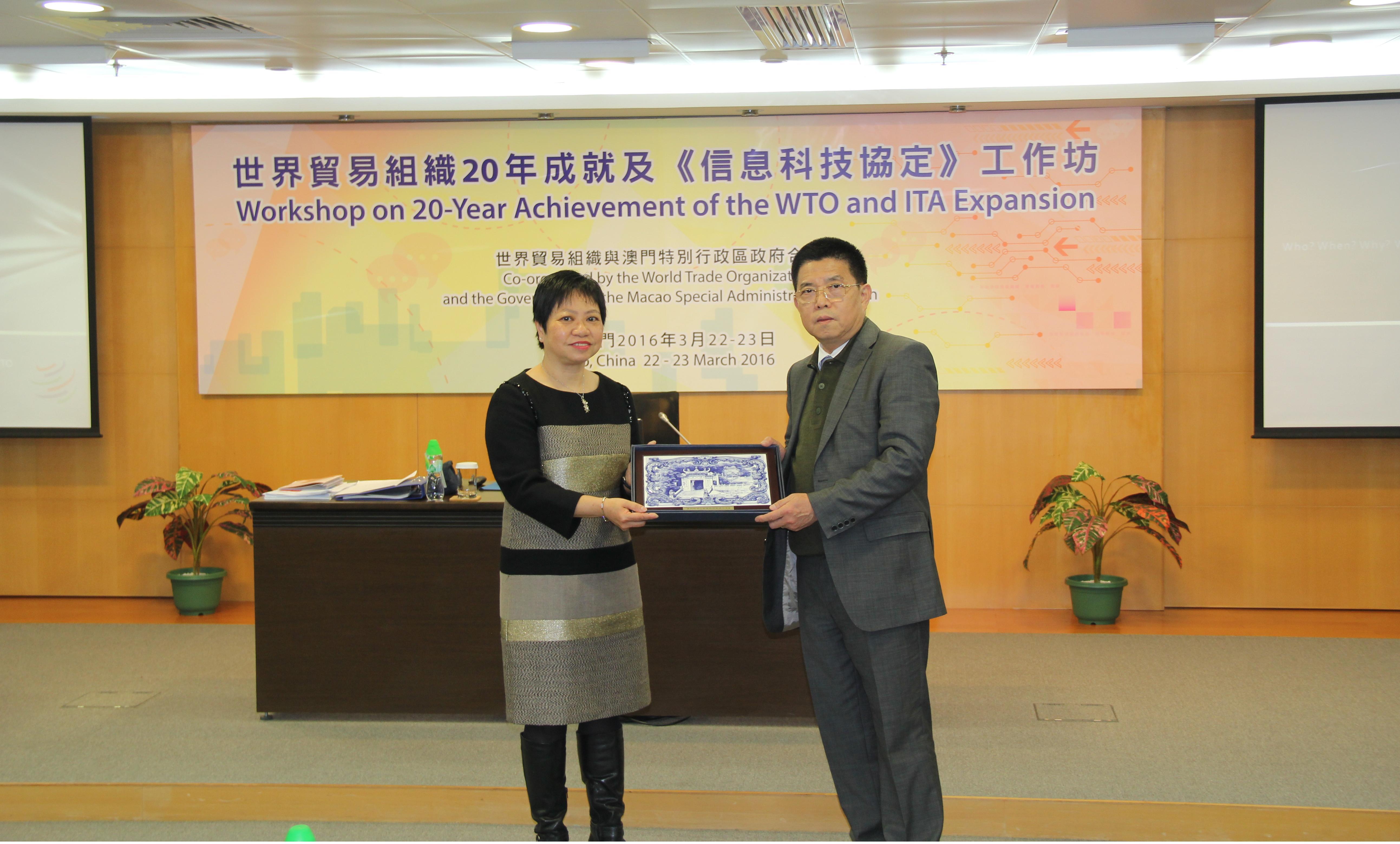 由澳門特別行政區政府及世界貿易組織合辦的“世界貿易組織20年成就及《信息科技協定》工作坊”於本年3月22至23日在經濟局會議室舉行。工作坊邀請了世界貿易組織秘書處市場准入司高級參贊唐小兵先生來澳作專題講解,共約45位本澳政府官員、學術機構代表以及從事信息科技的業界參加。