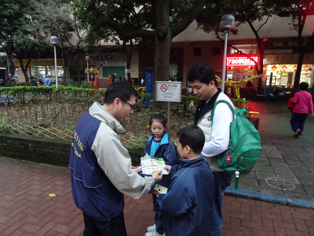 是次宣傳由3月16日開始,為期一周,司警局社區警務及公共關係處人員與“滅罪小先鋒”學員先後到高士德、中區、白鴿巢、望廈、台山、黑沙環、祐漢、關閘及氹仔等地區進行街頭防罪宣傳,向青少年及家長派發防罪宣傳單張及紀念品,一方面向青少年講解毒品對身心的危害和毒品犯罪的刑責,呼籲他們潔身自愛,遠離毒品,亦提醒家長要多關心子女,留意子女的日常行為和交友狀況;另一方面向社會展示司警局打擊毒品犯罪的決心,尤其是要震懾潛伏的犯罪份子。