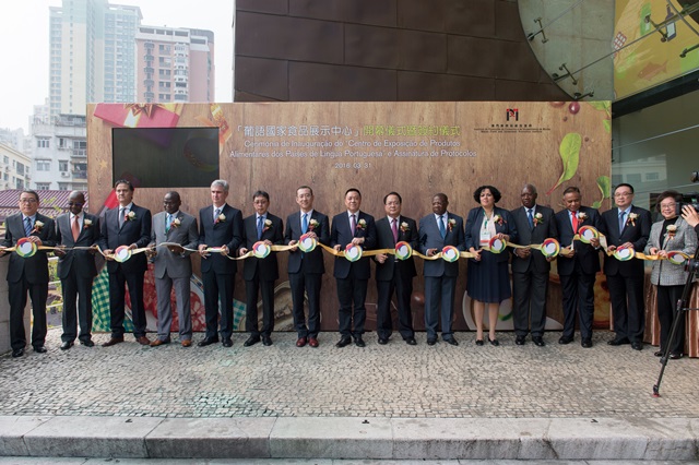“葡語國家食品展示中心”開幕儀式暨簽約儀式於下午三時舉行,主禮嘉賓包括:澳門特區政府經濟財政司梁維特司長,商務部台港澳司孫彤司長,外交部駐澳特派員公署潘雲東副特派員,中聯辦經濟部寇明副部長,安哥拉聯絡員及安哥拉外交部亞大司司長撒母耳‧庫尼亞(Samuel Cunha),巴西聯絡員及巴西外交部中國與蒙古事務處處長奧蘭多‧雷特‧裡貝羅(Orlando Leite Ribeiro),佛得角駐華大使塔尼亞‧羅穆阿爾多(Tânia Romualdo),幾內亞比紹駐華大使馬嵐‧桑布 (Malam Sambú),莫桑比克聯絡員及莫桑比克外交合作部亞洲和大洋洲司司長貝爾米羅•若澤•馬拉特(Belmiro José Malate),葡萄牙駐華大使若熱‧托雷斯‧佩雷拉 (Jorge Torres Pereira),東帝汶駐華大使本迪杜‧弗雷塔斯(Bendito Freitas),葡語國家駐華使團團長(Joao Garcia Bires),澳門貿易投資促進局張祖榮主席,中國-葡語國家經貿合作論壇(澳門)常設秘書處常和喜秘書長及中華總商會賀定一副理事長。
