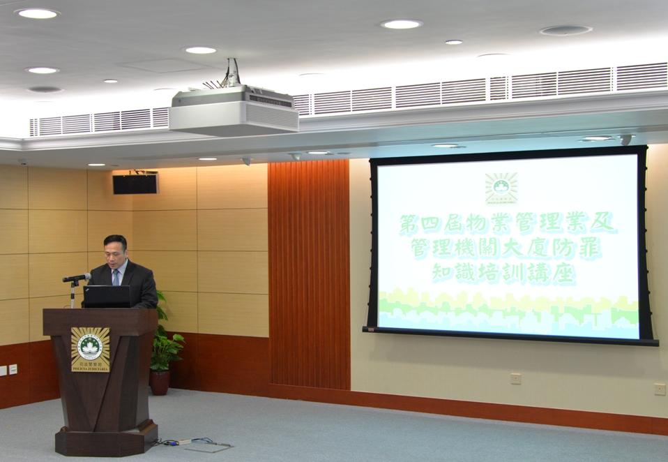 司法警察局舉行第四屆“物業管理業及管理機關大廈防罪知識培訓講座”,向業界講解近期住宅盜竊的情況,並提供最新的防罪資訊,以減少罪案的發生。
