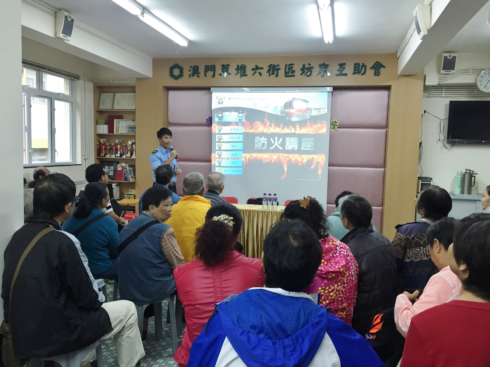 消防局一向著重「以防為主」的消防工作理念,主動將防火安全訊息帶入社區,希望藉此減低火災發生的機會。消防局於4月19日,派出官員拜訪“草堆六街區坊眾互助會”,聽取坊會就防火、滅火及救援等工作的意見,亦為坊會及區內一帶居民舉辦防火講座,講解日常應注意的防火事項、以及如遇火警時的應變措施,講座約50名會員參與,其後聯同會員、義工一同到區內派發宣傳單張及張貼海報,希望藉此提高區內防火意識,而相關防火宣傳工作將會持續進行。