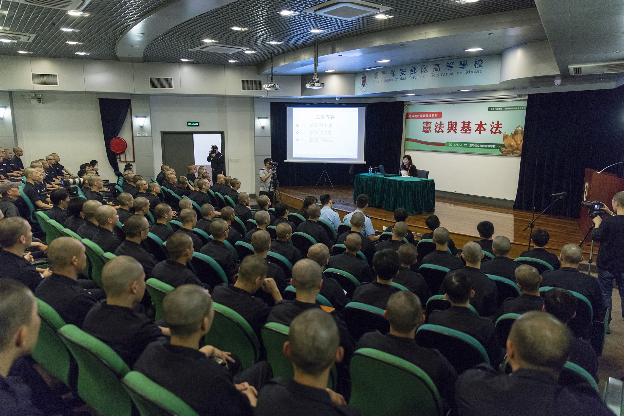 澳門保安部隊高等學校為本地培育專業的軍事化人員,為特區及市民大眾提供優質的服務。鑒於憲法與基本法對特區的重要性,法務局和保安高校期望藉由專題講座,讓學員能正確理解兩法及相互關係。