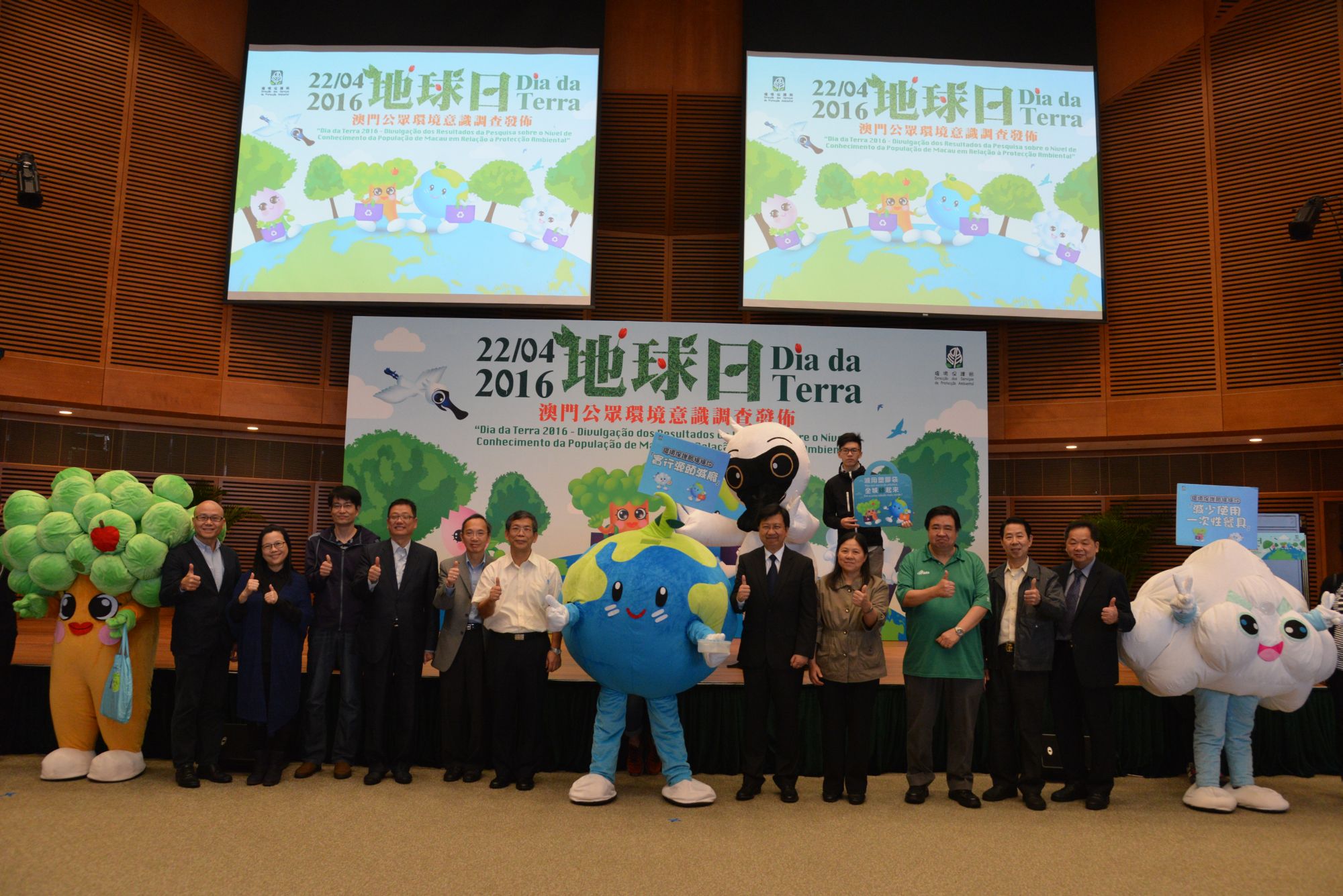為響應4月22日「世界地球日」,環境保護局每年均藉這別具意義的國際性環保節日,向大眾進一步推廣環境保護訊息。今年繼續舉辦“2016地球日-澳門公眾環境意識調查發佈”活動,發佈“2015澳門公眾環境意識調查”結果。