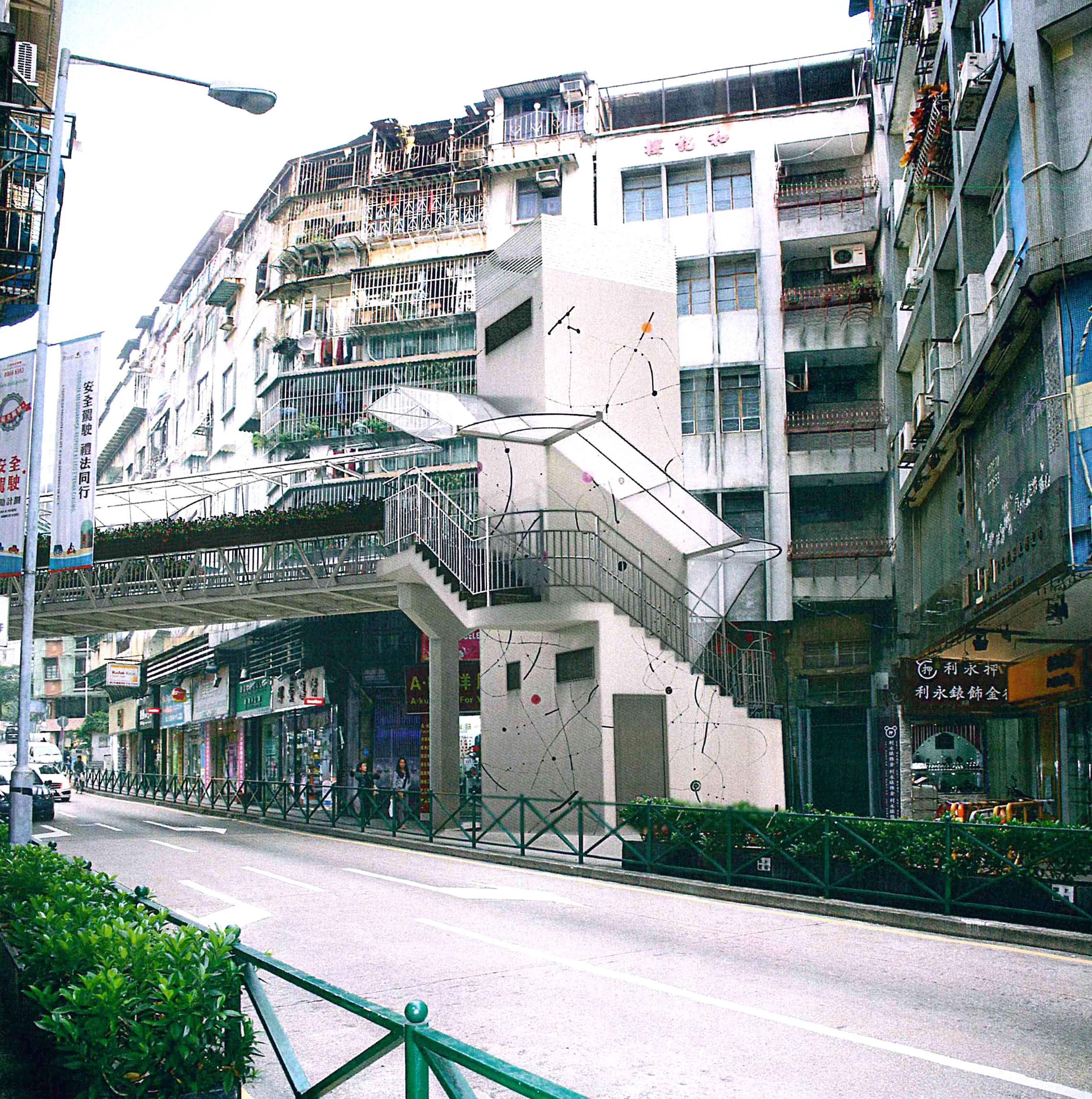 東望洋街行人天橋連接荷蘭園二馬路及雀仔園一帶,由於現場空間局限,政府一直未能加裝無障礙設施,經進一步研究,是次工程主要改建原有行人天橋樓梯,保留橋身,在天橋兩端加裝升降機及優化周邊路面。