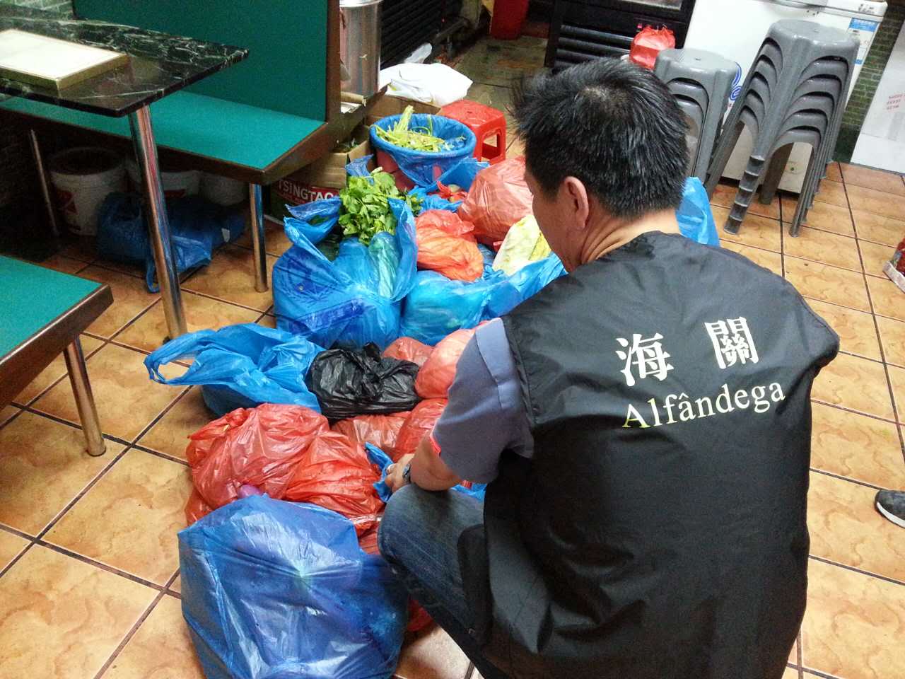 五一節假期間,為保障本地區食品安全,澳門海關日前聯同民政總署食品安全中心進行聯合巡查。期間在關閘一帶發現有人收集水客從內地帶回本澳的物品,然後送往本澳多間食肆及菜檔,兩部門隨即採取稽查行動,檢獲依法須受檢疫而未經檢疫進口的蔬果及醃製類等物品共重441公斤,全數交民政總署處理。