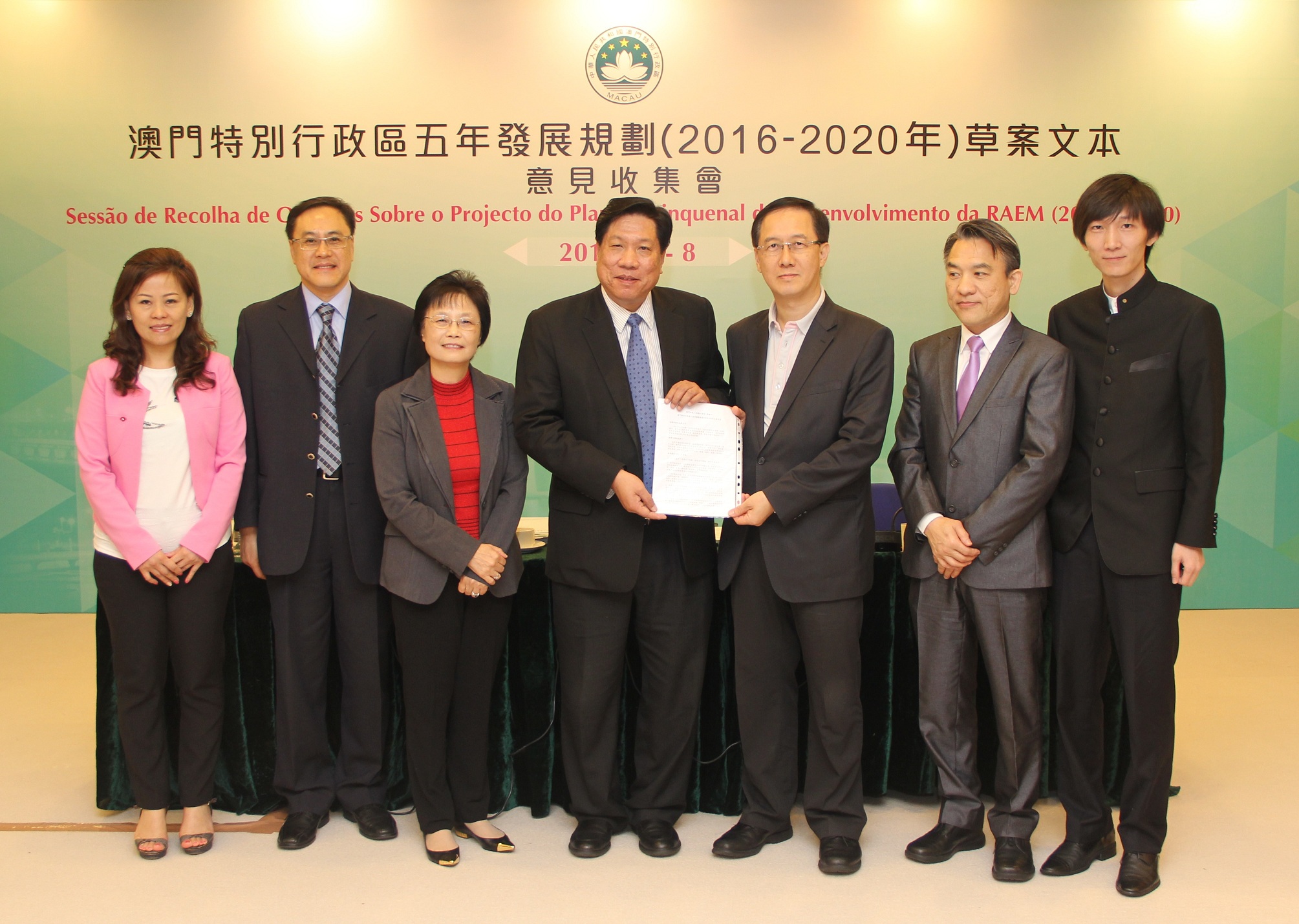 《澳門特別行政區五年發展規劃(2016-2020年)草案文本》於4月26日公佈並展開為期兩個月的意見收集工作。五年發展規劃是未來五年特區經濟社會發展的總體藍圖,是政府與廣大居民共同努力的行動綱領。因此,廣泛聽取社會各界意見、凝聚民智、匯合民力,對於五年發展規劃的制定和實施是相當重要的。為此,專責本次意見收集工作的政策研究室今日(8日)於政策研究室進行街總、婦聯、僑總及各區工商聯會專場的意見收集會。