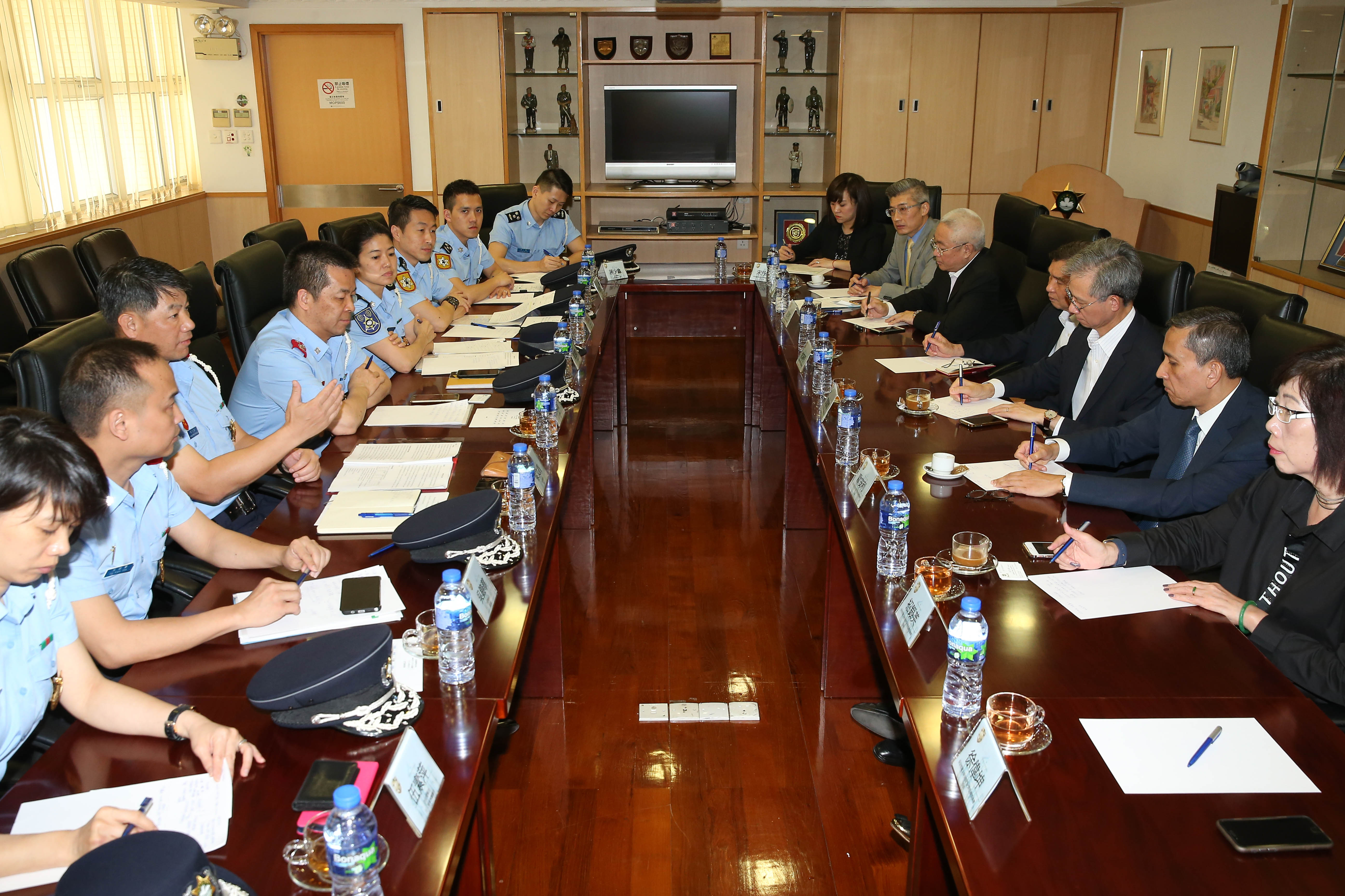 紀監會歐安利主席表示,澳門作為世界旅遊休閒中心,而且在現今複雜的社會環境下,雙方未來將面對更多的新挑戰。接著雙方就家暴事件、交通執法、警員執法態度、旅遊警察及日前本澳出入境電腦系統伺服器故障事件等議題進行深入交流。期間紀監會各代表均主動提問,直抒己見,互動氣氛熱烈。