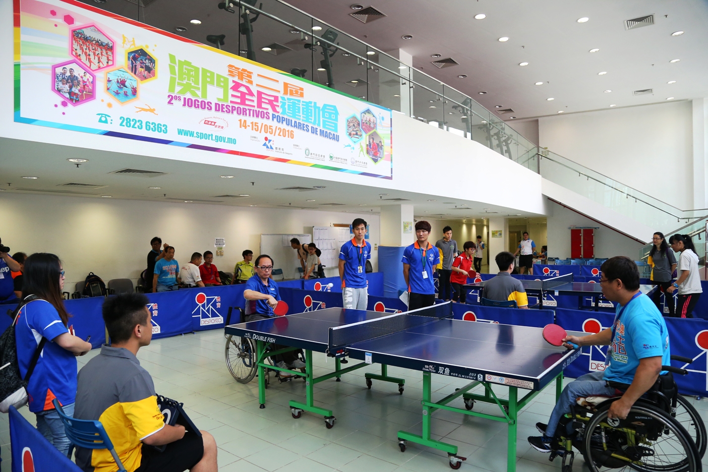 「第二屆澳門全民運動會」昨起一連兩天在奧林匹克體育中心運動場、游泳館及戶外天地舉行,比賽項目包括田徑、游泳和乒乓球。繼首日賽事後,今天分別進行了多項賽事,包括田徑項目的兒童、少年、青年及公開組,游泳家庭親子項目及青少年組、成人組個人項目,與乒乓球殘疾人士項目以及男、女子單打、雙打賽事。
