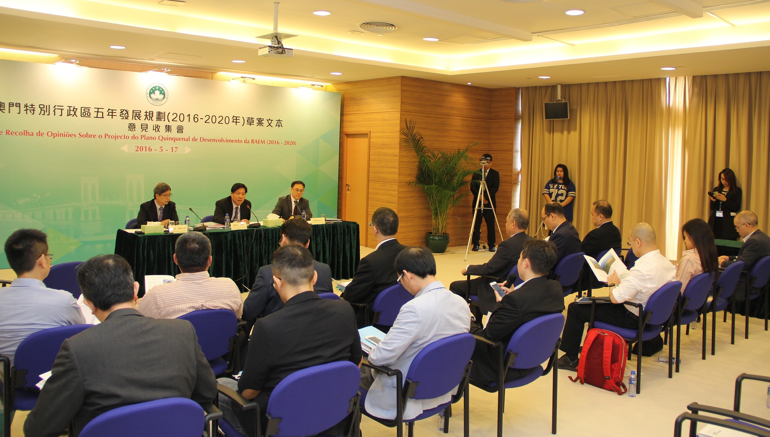 《澳門特別行政區五年發展規劃(2016-2020年)草案文本》於4月26日公佈並展開為期兩個月的意見收集工作。五年發展規劃是未來五年特區經濟社會發展的總體藍圖,是政府與廣大居民共同努力的行動綱領。因此,廣泛聽取社會各界意見、凝聚民智、匯合民力,對於五年發展規劃的制定和實施是相當重要的。為此,專責本次意見收集工作的政策研究室今日(17日)上午於政策研究室進行了專家學者專場的意見收集會。
