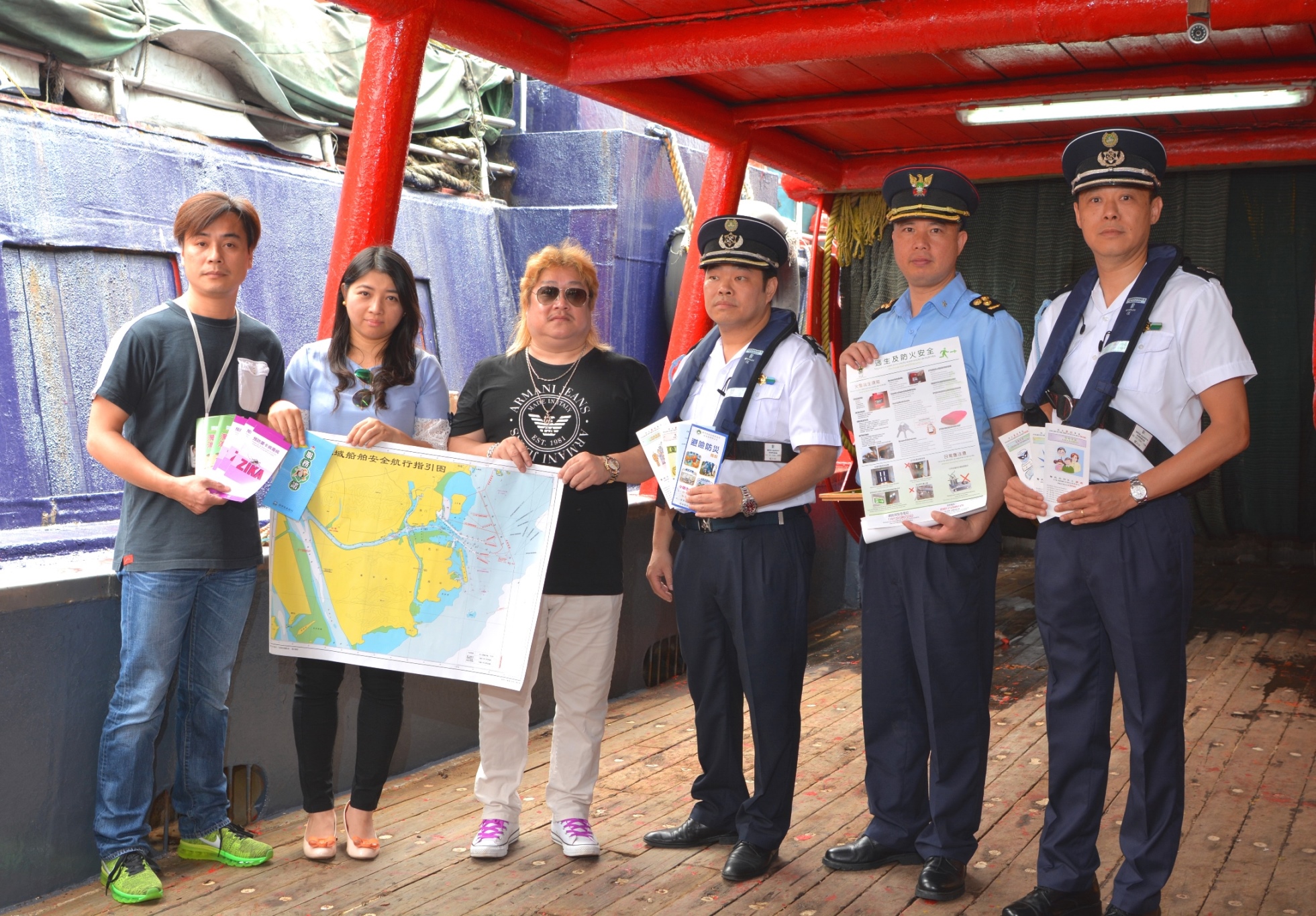 《環澳門水域船舶安全航行指引圖》,讓漁民了解相關的通航安全資訊,以加強漁民應對海上突發事故的能力。此外,海事及水務局派員在漁船當眼處張貼救援通訊資料,包括海上防火及救援的緊急聯繫電話以及無線電頻道。