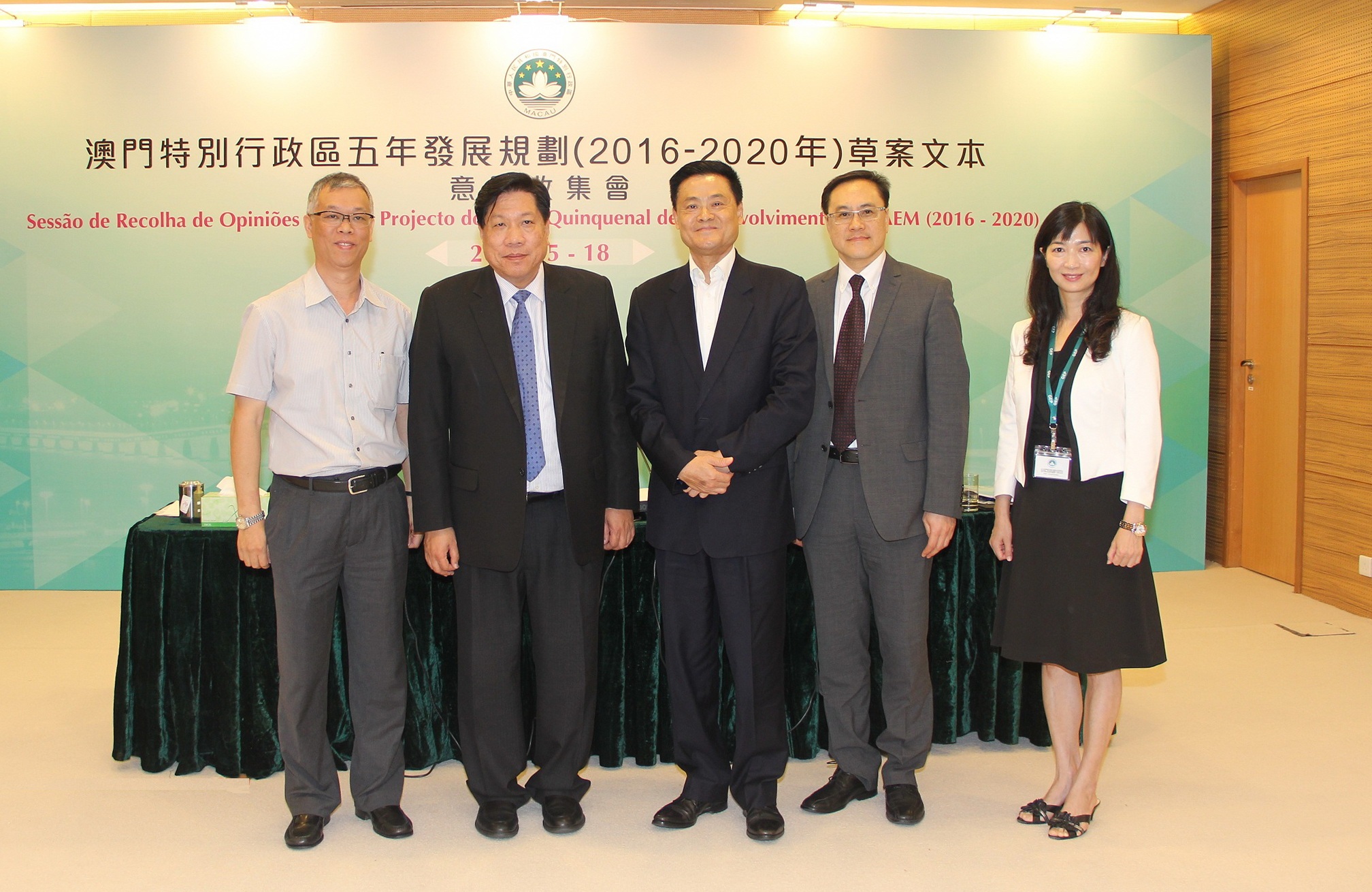 《澳門特別行政區五年發展規劃(2016-2020年)草案文本》於4月26日公佈並展開為期兩個月的意見收集工作。五年發展規劃是未來五年特區經濟社會發展的總體藍圖,是政府與廣大居民共同努力的行動綱領。因此,廣泛聽取社會各界意見、凝聚民智、匯合民力,對於五年發展規劃的制定和實施是相當重要的。為此,專責本次意見收集工作的政策研究室今日(18)上午於政策研究室舉行了中小企商會社團專場的意見收集會。