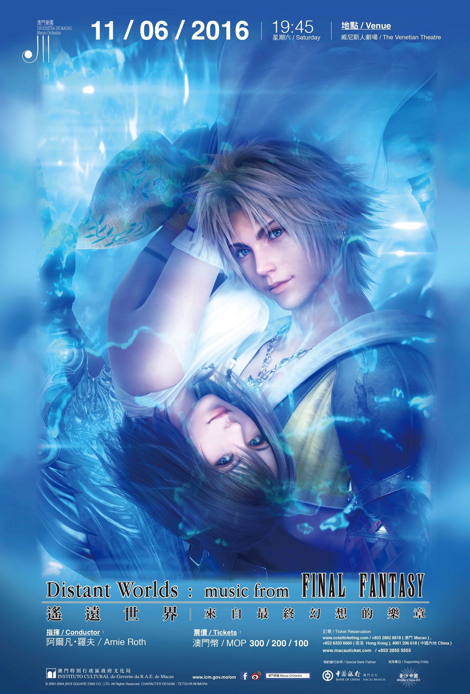 文化局澳門樂團將於六月十一日〈星期六〉晚上七時四十五分於威尼斯人劇場,首次帶來日本電視遊戲作曲家植松伸夫所創作的《遙遠世界:來自最終幻想的樂章》交響音樂會,由格林美得獎者阿爾凡.羅夫〈Arnie Roth〉擔任指揮,率領澳門樂團演奏SQUARE ENIX世界聞名的電視遊戲《最終幻想》系列音樂,屏幕上同步播放遊戲影像剪輯,帶來視覺與聽覺的情感衝擊。音樂會由金沙中國贊助,歡迎有興趣樂迷購票欣賞。