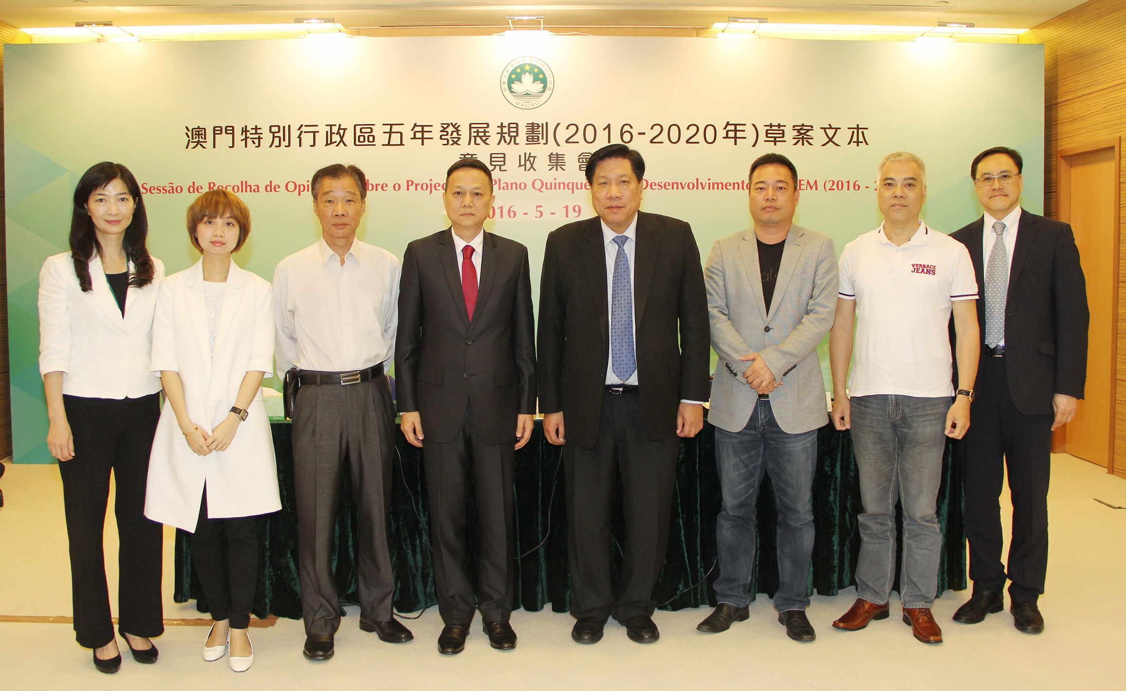 《澳門特別行政區五年發展規劃(2016-2020年)草案文本》於4月26日公佈並展開為期兩個月的意見收集工作。五年發展規劃是未來五年特區經濟社會發展的總體藍圖,是政府與廣大居民共同努力的行動綱領。因此,廣泛聽取社會各界意見、凝聚民智、匯合民力,對於五年發展規劃的制定和實施是相當重要的。為此,專責本次意見收集工作的政策研究室今日(19日)上午於政策研究室舉行了酒店及旅遊業界專場的意見收集會。
