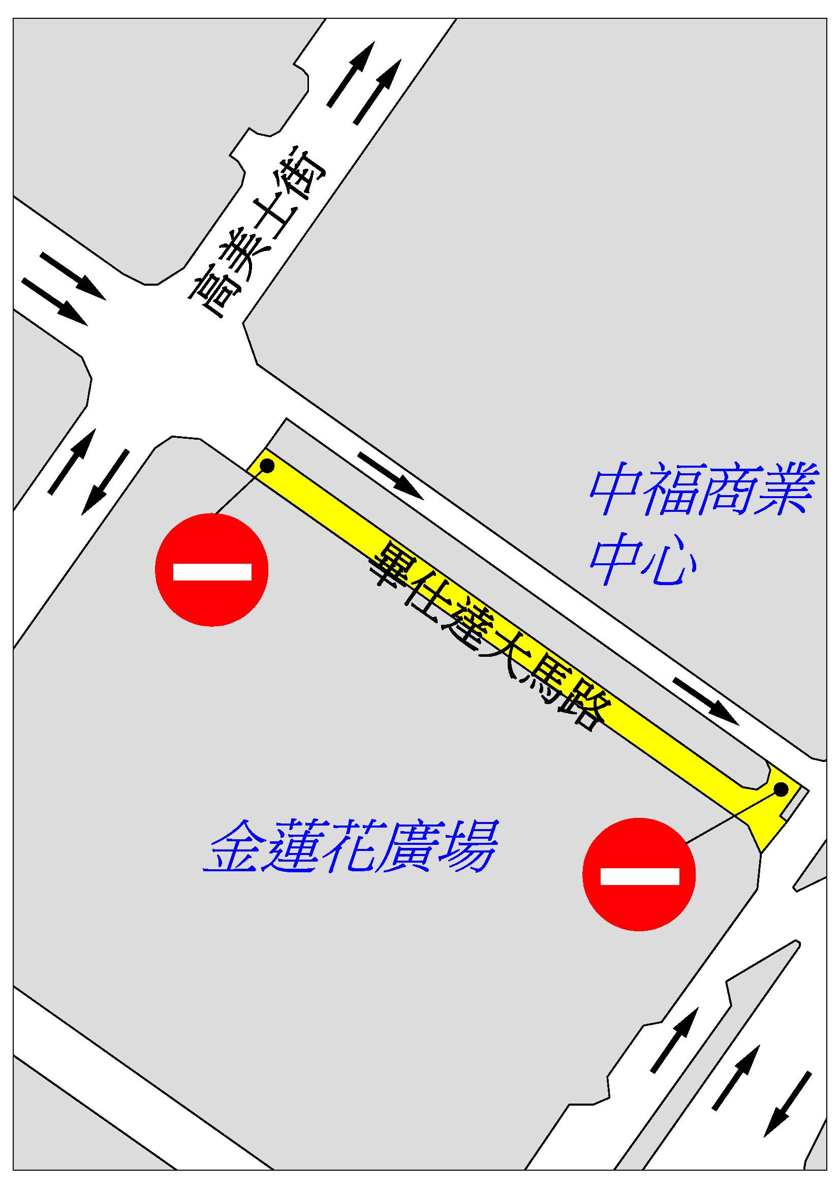 配合水管鋪設,畢仕達大馬路近金蓮花廣場的路段,本月30日(周一)上午10時起封閉交通及禁止車輛停泊,工期約6日。