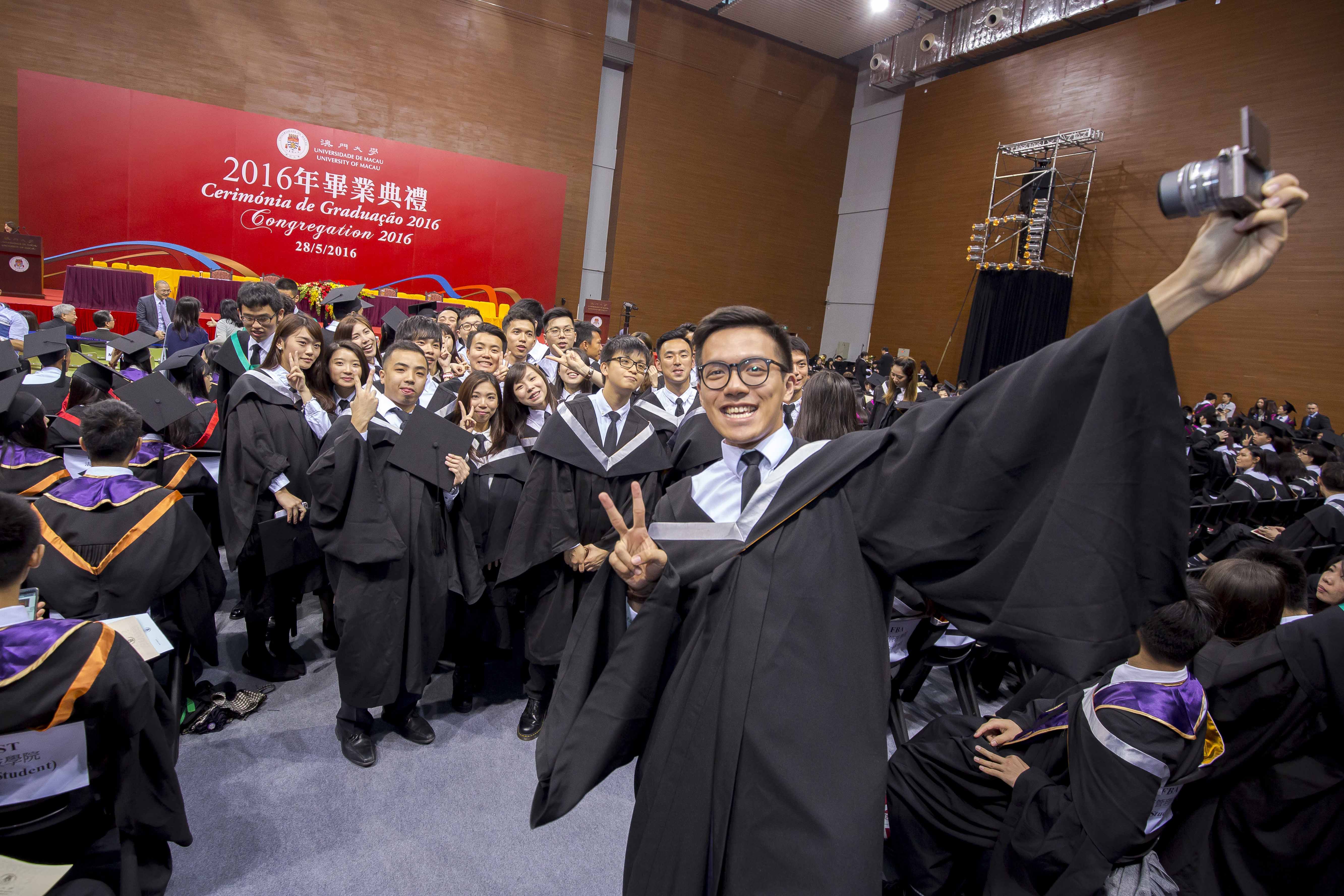 澳門大學今(28)日在澳大綜合體育館隆重舉行了2016年畢業典禮,向出席的一千多名畢業生頒發證書。行政長官兼澳大校監崔世安表示,澳大的辦學水平不斷提升,從軟硬件建設方面都顯示出為澳門培養優秀人才的良好勢頭,也具備了向國際一流大學目標進發的基本條件。