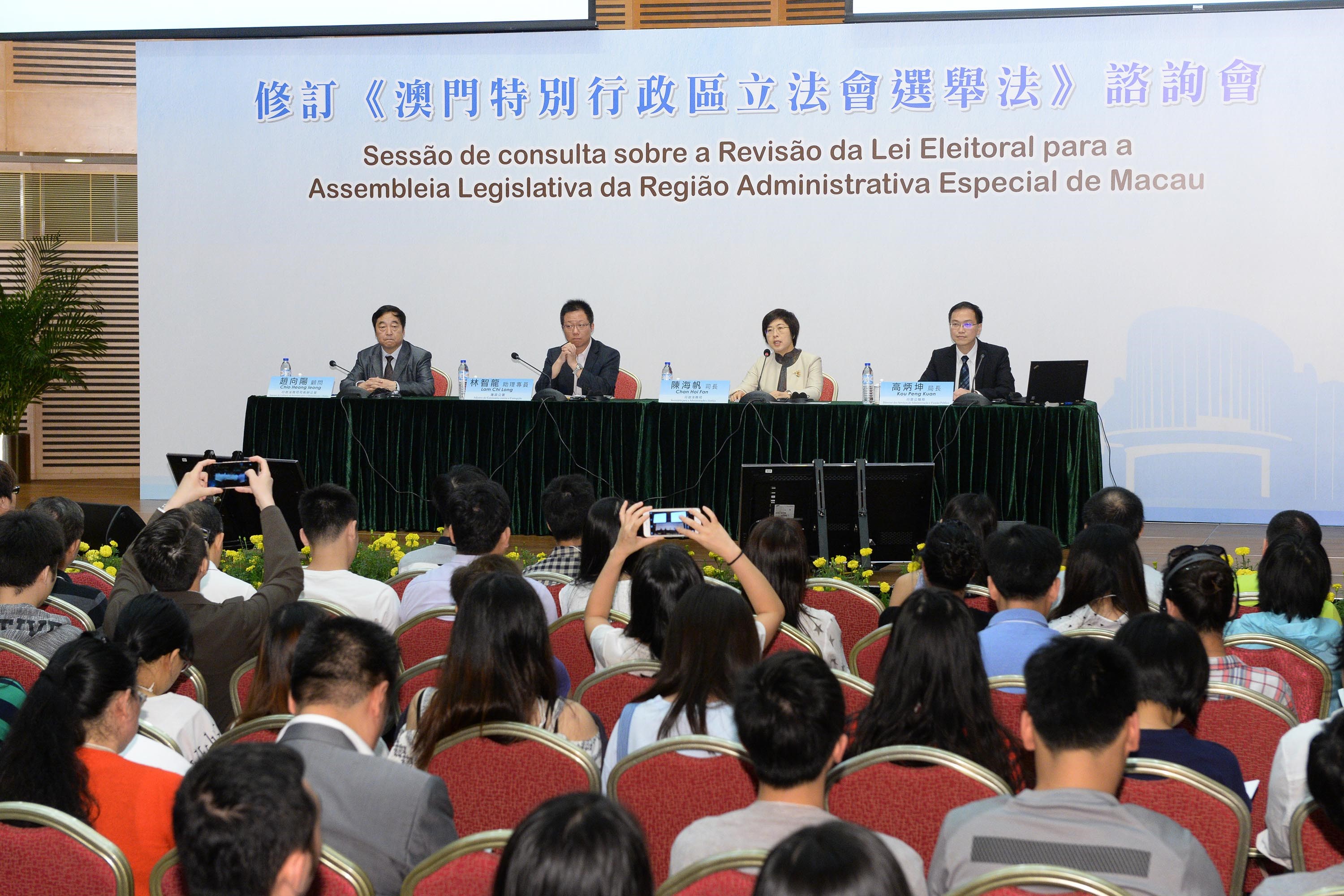 諮詢會下午3時至5時在科學館會議廳舉行,由行政法務司陳海帆司長主持,廉政公署林智龍助理專員、行政公職局高炳坤局長及行政法務司司長辦公室趙向陽顧問出席,向與會者介紹諮詢文本並作出回應。