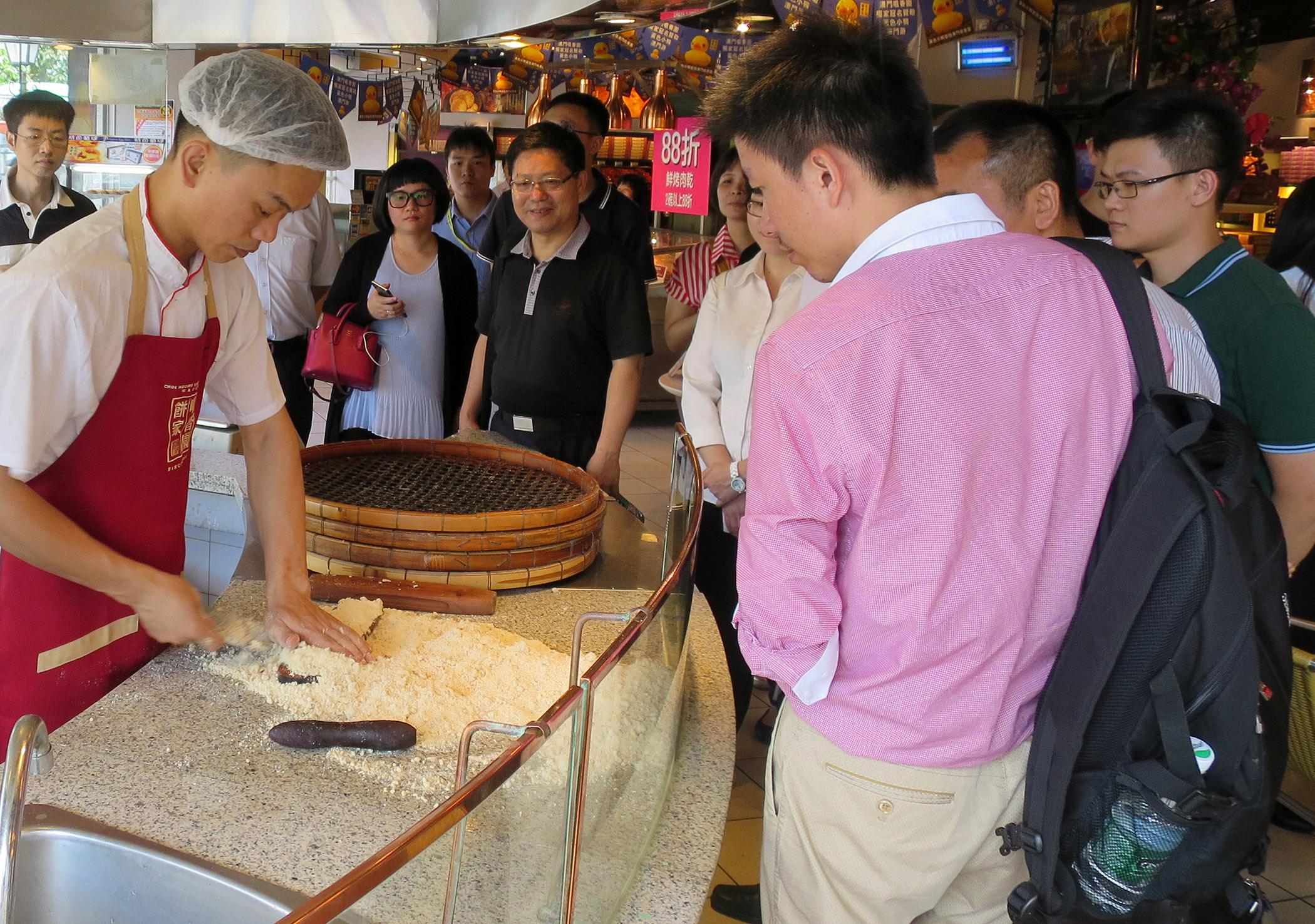 廣東食品業界代表團一行約二十人於六月一日,由廣東省食品藥品監管局食品綜合協調處羅建輝副處長率領來澳考察交流,了解本澳傳統特色手信餅業如何完善安全衛生管理,亦參訪了另一手信食品企業及其廠房,並由該企業代表介紹由原材料入口、加工處理到成品分銷的整個製作流程,以及當中所涉及的品質控管技術,就現代化、標準化生產和傳統手製當中的衛生要求與實際操作進行經驗分享。另外,交流團到了氹仔舊城區的手信零售店參觀,了解本澳手信業食品從食品貯存、銷售模式及展示設備等衛生要求,並就手信行業所建立的內部管理制度及人員培訓等問題交換了意見。