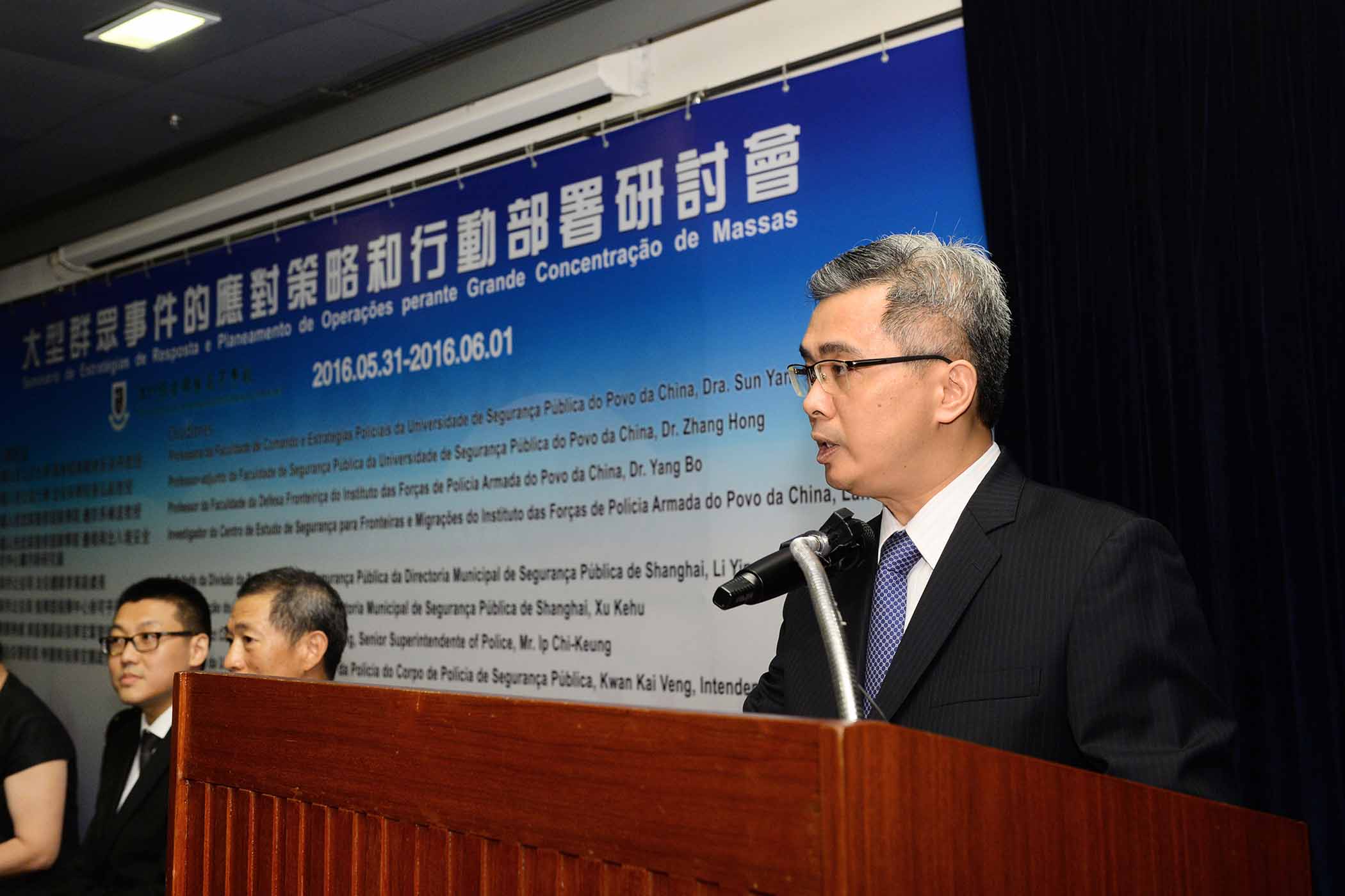 黃少澤司長又指出,隨著澳門社會的日趨多元及澳門旅遊業的迅速發展,大型人群聚集或群體性事件更加多發及更加複雜,有效管理和引導人群、及時化解和消除這類事件對社會穩定的衝擊是警隊維護社會秩序、保障公民的權利自由的重要工作,也是建設澳門成為「宜遊」、「宜樂」、「宜居」、「宜行」、「宜業」的城市的必要前提。這次在澳門開展的「大型群眾事件的應對策略和行動部署」交流研討會,是澳門保安司轄下各部門與中國人民公安大學、中國人民武裝警察部隊學院、上海市公安局及香港警務處,就有關警察工作的理論和實務經驗的一次務實合作,藉此改善澳門保安部隊的警務工作,同時希望將來可以舉辦更多類似的研討交流活動,互相借鑑,共同提高。