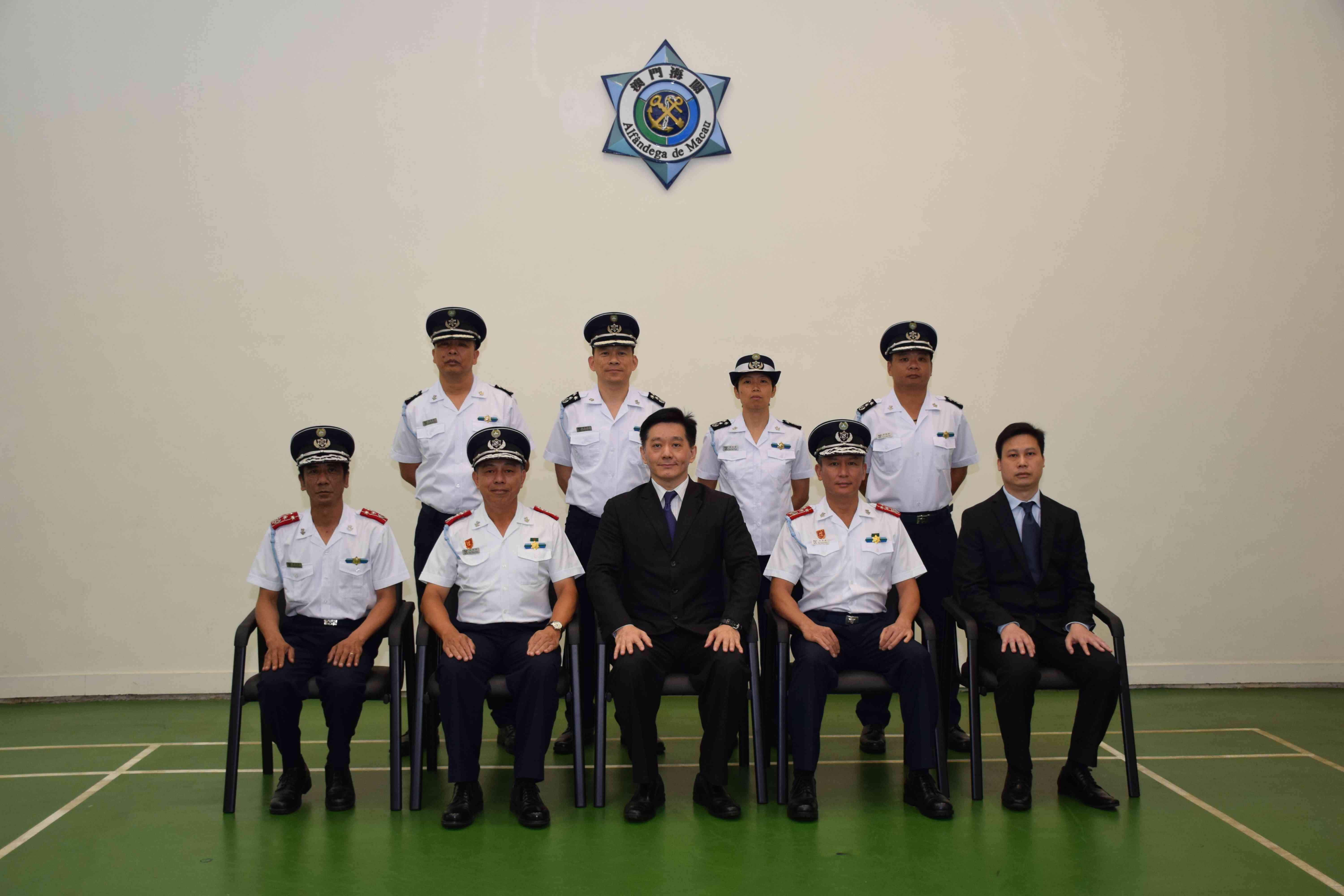 黃有力關長為各人戴上新肩章,他充分肯定四名新關務總長在過往的工作表現,並指出,海關未來的工作艱巨而且富有挑戰性的,尤其中央劃給澳門85平方公里水域的管理和執法、港珠澳大橋的開通,以及橫琴自貿區和澳門蓮花口岸的通關事務等,但相信憑藉他們過往工作中所累積的豐富經驗,定能克服未來的各種挑戰。