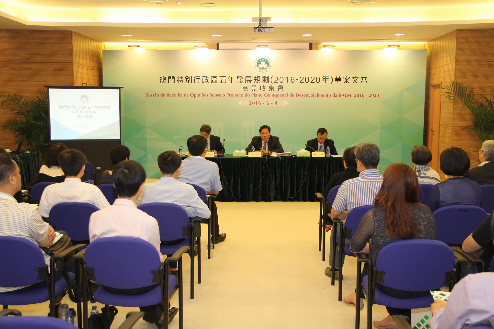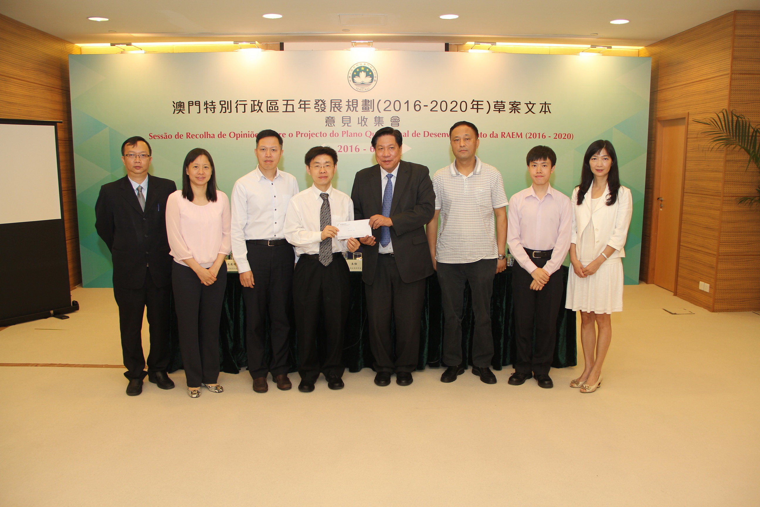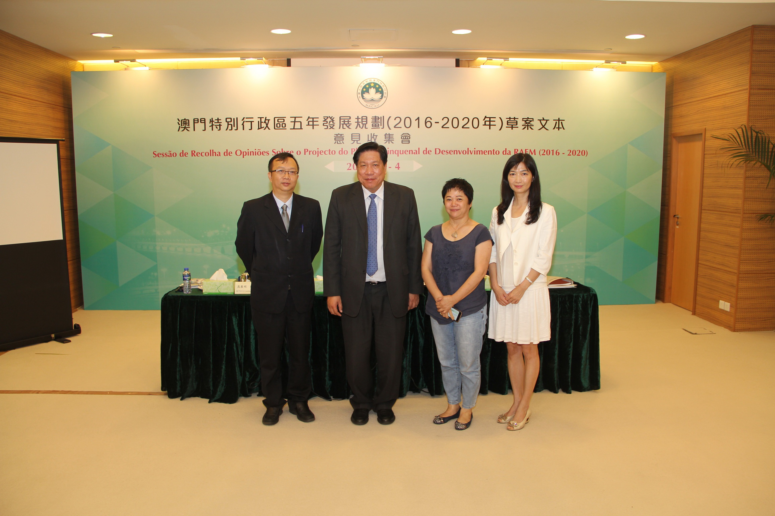 《澳門特區五年發展規劃(2016-2020年)草案文本》於4月26日公佈並展開為期兩個月的意見收集工作。五年發展規劃是未來五年特區經濟社會發展的總體藍圖,是政府與廣大居民共同努力的行動綱領。在編制過程中,得到國家發展和改革委員會規劃司、清華大學和澳門理工學院幾個顧問團隊的義務指導。
