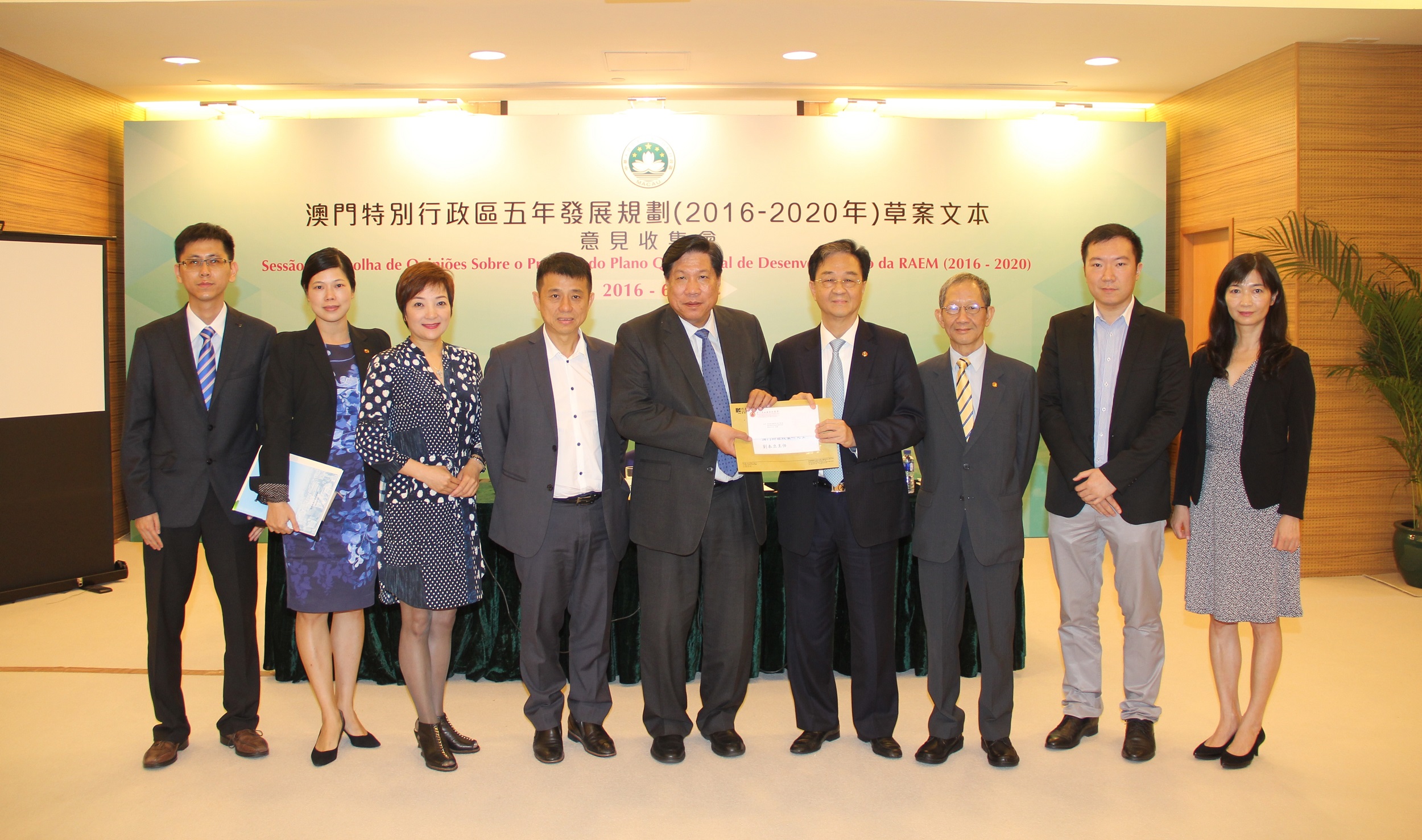 《澳門特區五年發展規劃(2016-2020年)草案文本》於4月26日公佈並展開為期兩個月的意見收集工作。專責本次意見收集工作的政策研究室今日(6月6日)上午於政策研究室舉行了地產及鄉誼社團專場的意見收集會。政策研究室主任劉本立、職務主管高展明及研究員連信森出席了意見收集會,並聽取了與會人士的意見。